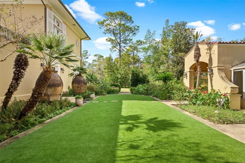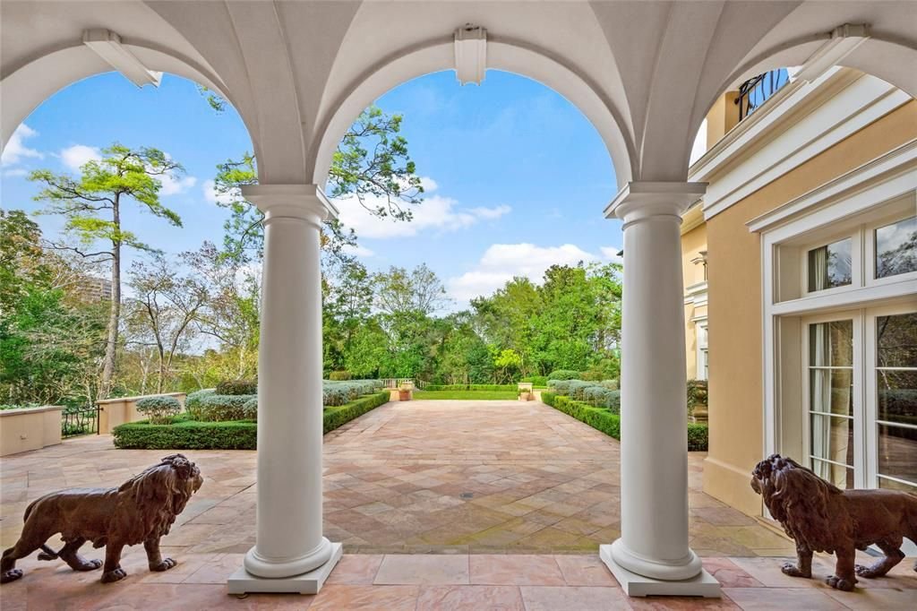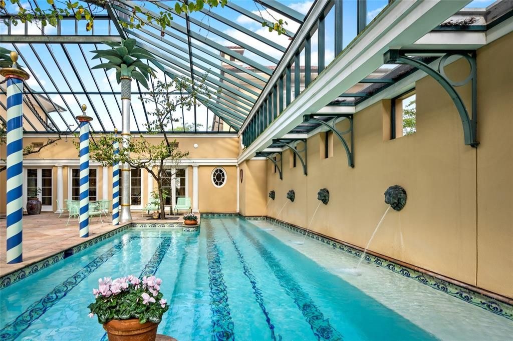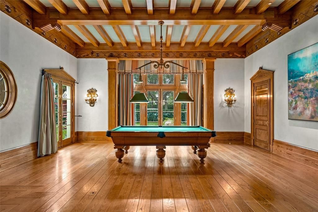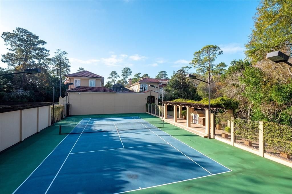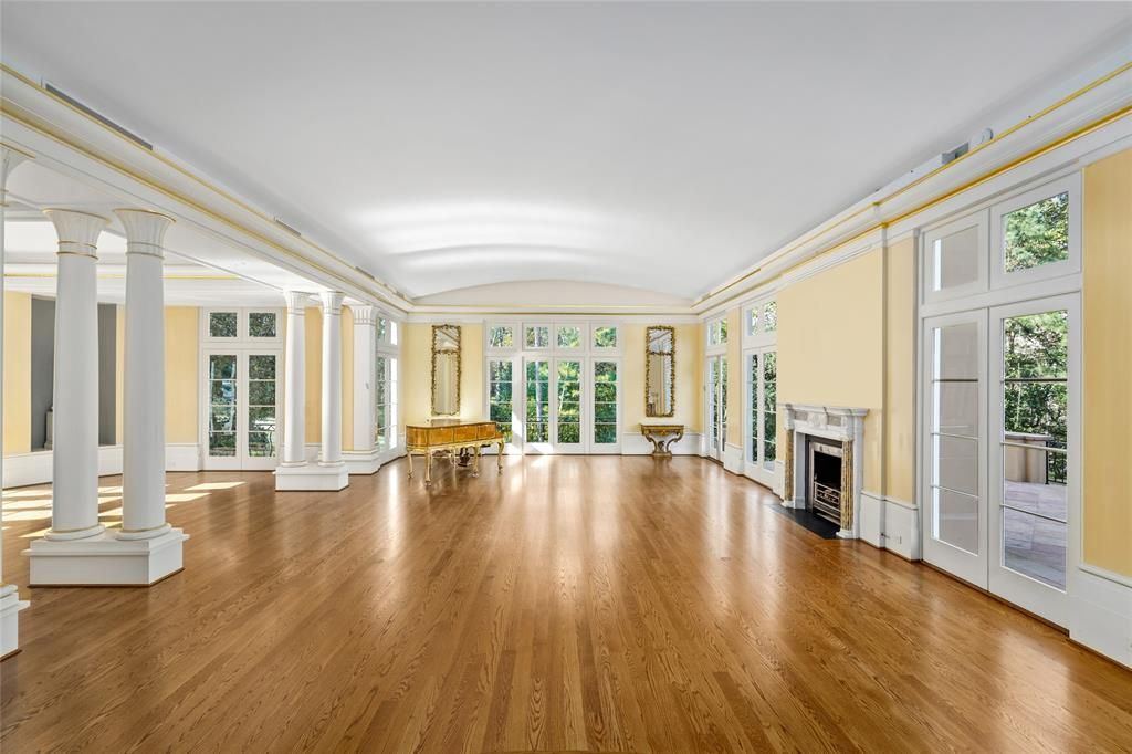 Set on 4.53 acres, the estate’s exterior is as remarkable as its interior. It includes a full tennis court with a queen’s grandstand, multiple lawns, gardens, and terraces. The centerpiece is an interior pool deck, offering an oasis of tranquility and relaxation.