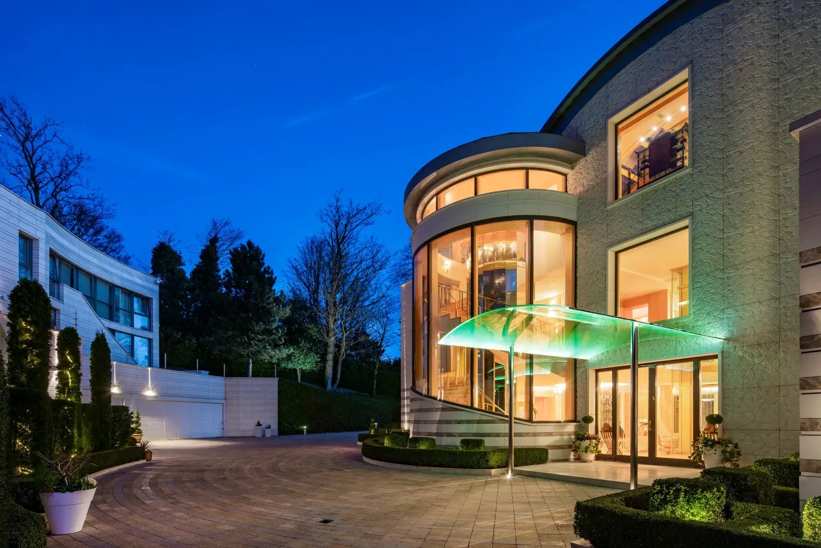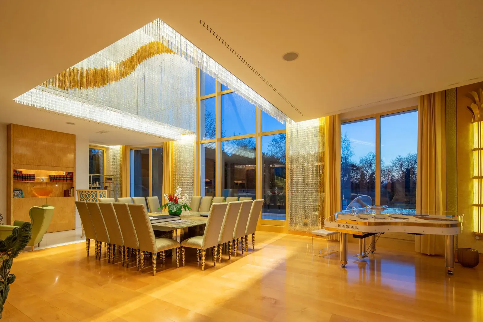 A Journey of Luxury from the Entrance The grandeur of Heathfield House begins at the entrance, with a luxurious hall featuring a glass lift to each floor. The formal sitting and dining room, overlooking the lush grounds, exudes elegance and opens onto the breakfast room, leading to a state-of-the-art kitchen.
