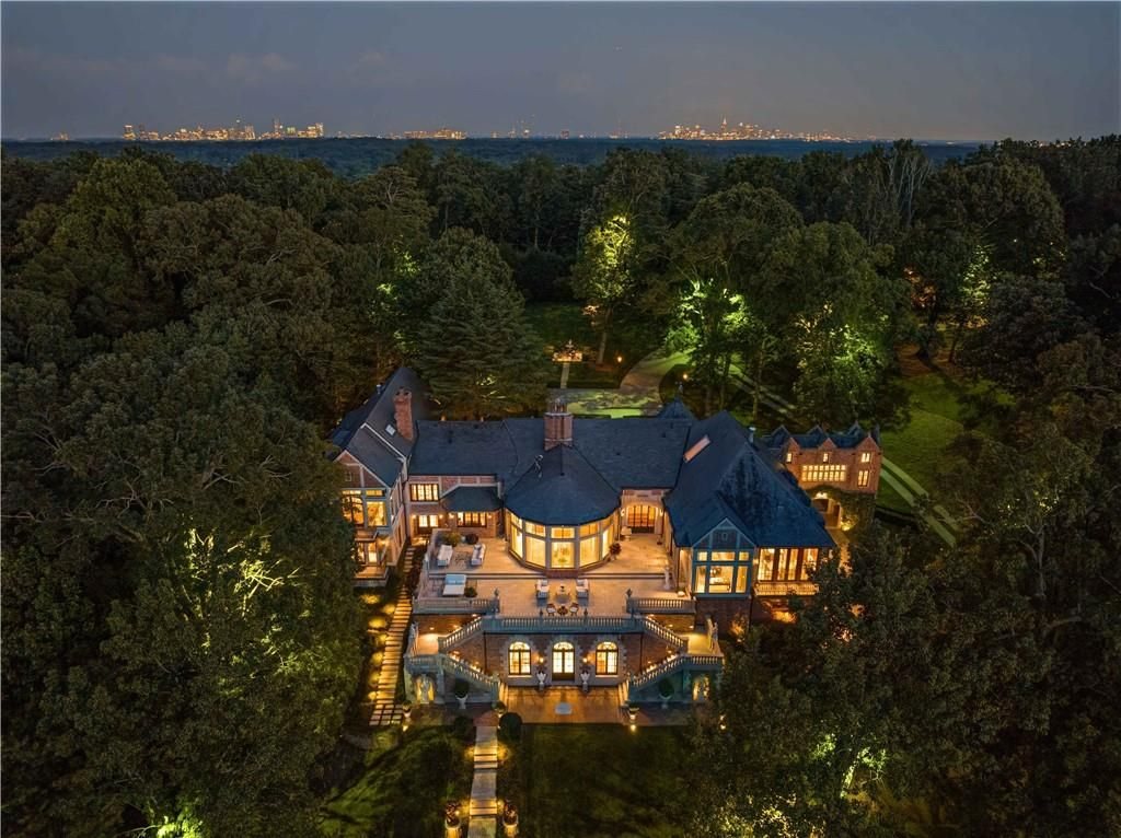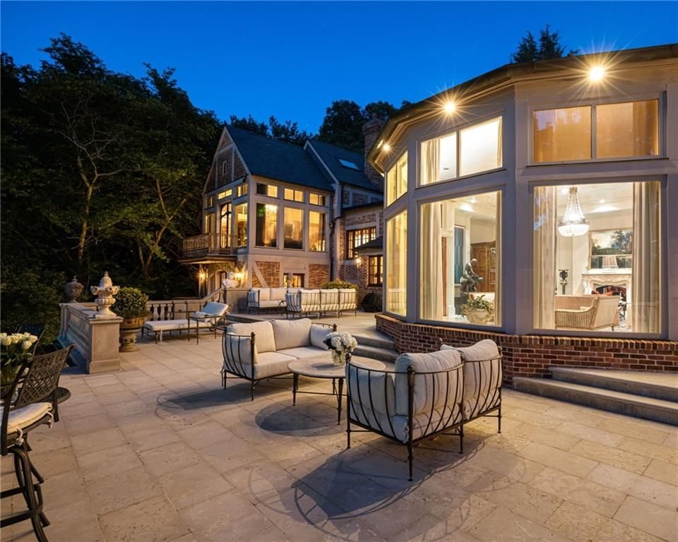 • Elegant Exterior: The estate features a limestone and brick façade, exuding timeless grandeur.