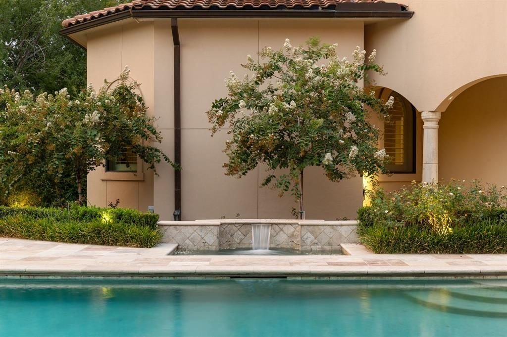Step outside to discover an entertainer’s dream come true. Sprawling covered terraces, a heated pool and spa with cascading fountains, a fire pit, and a 10-foot waterwall create the perfect setting for hosting lavish gatherings or enjoying serene moments of relaxation.