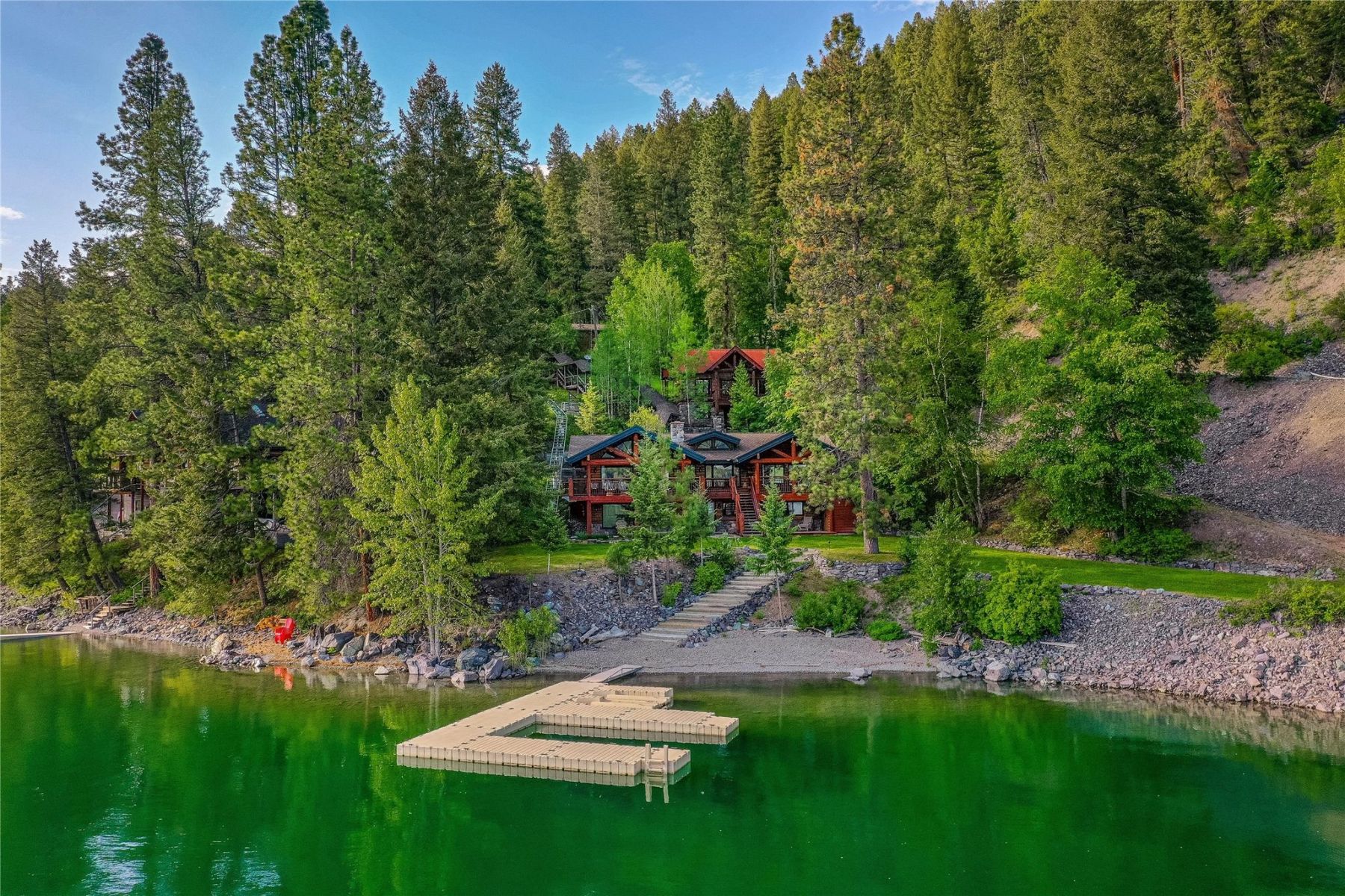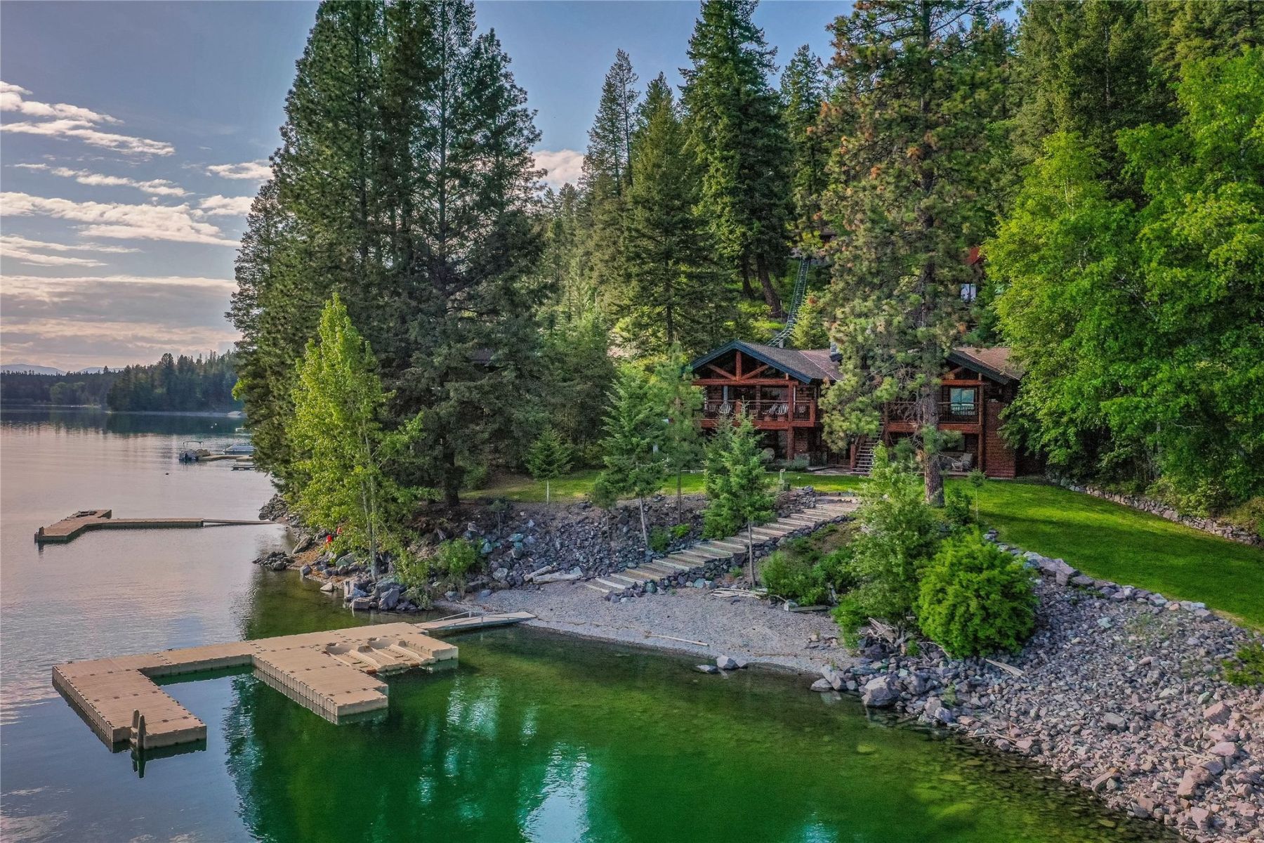 Escape to a picturesque oasis on the shores of Whitefish Lake at 100 Scullers Way, Whitefish, MT 59937. This remarkable property spans an expansive 3.24 acres, boasting 400 feet of pristine lake frontage and offering a truly unparalleled waterfront living experience.