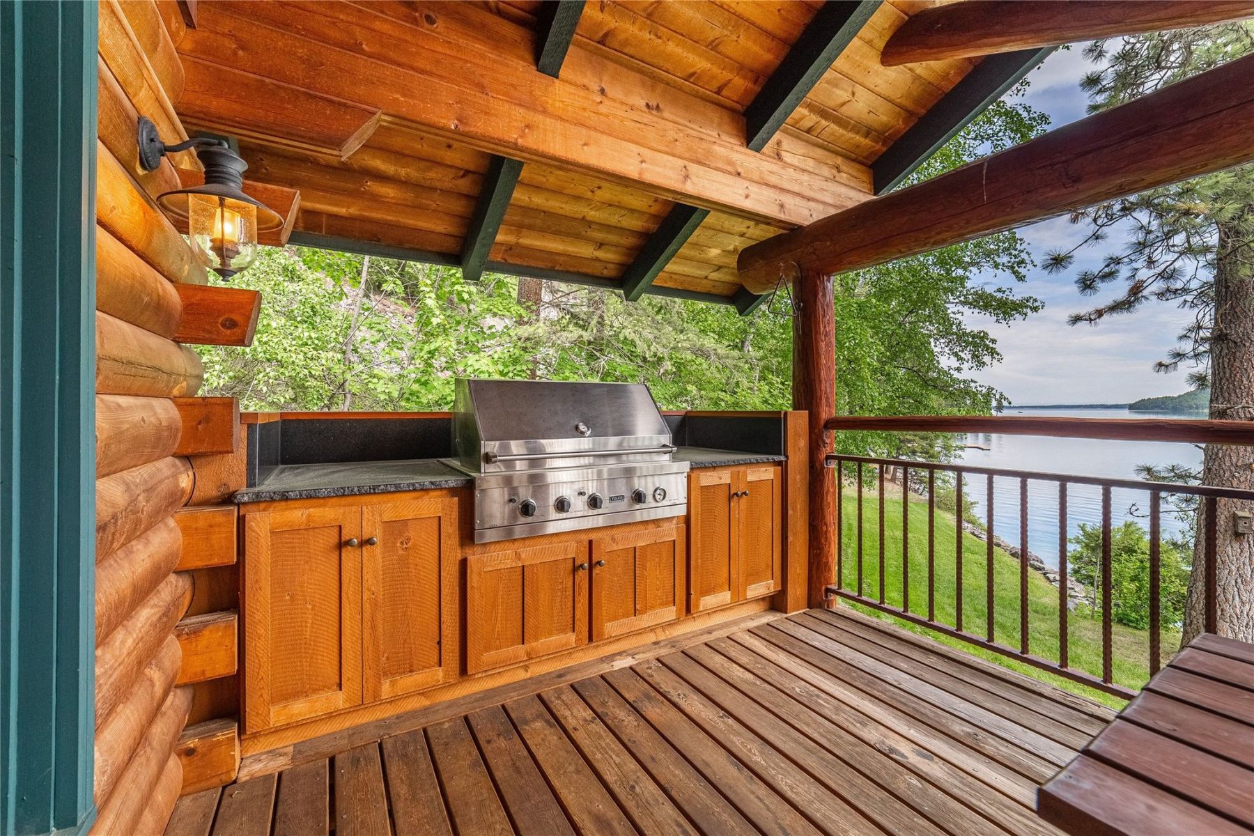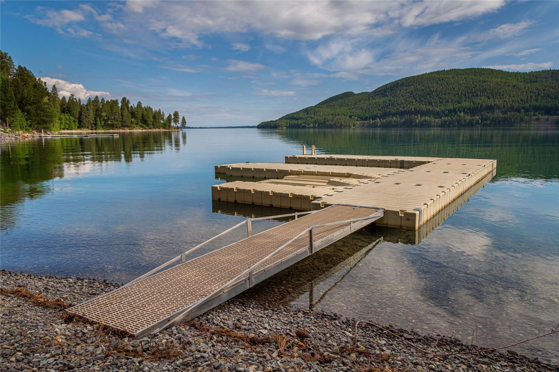 A floating dock awaits your boat, offering easy access to the deep waters of Whitefish Lake, perfect for water sports, fishing, or simply cruising along the pristine shoreline. The property also includes a dock, propane tank, and additional parking spaces.