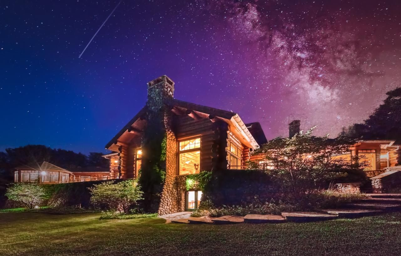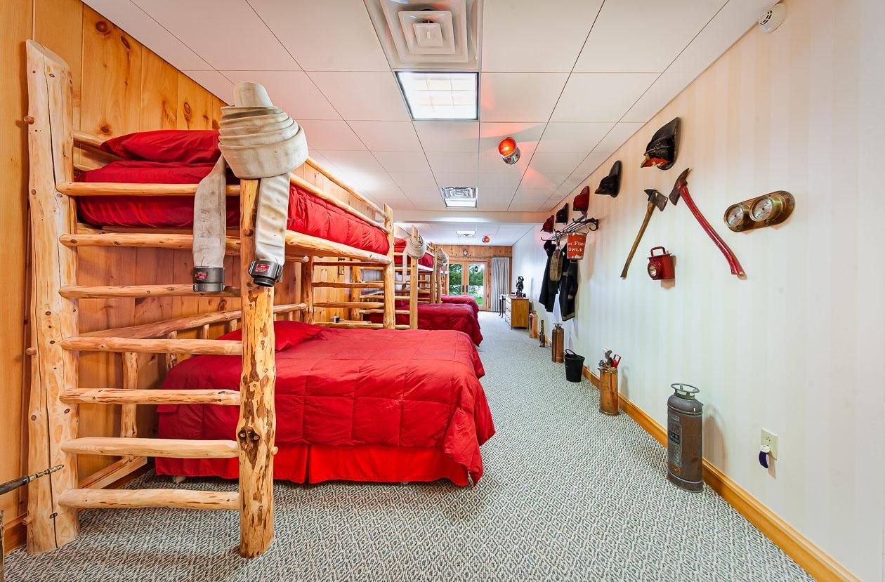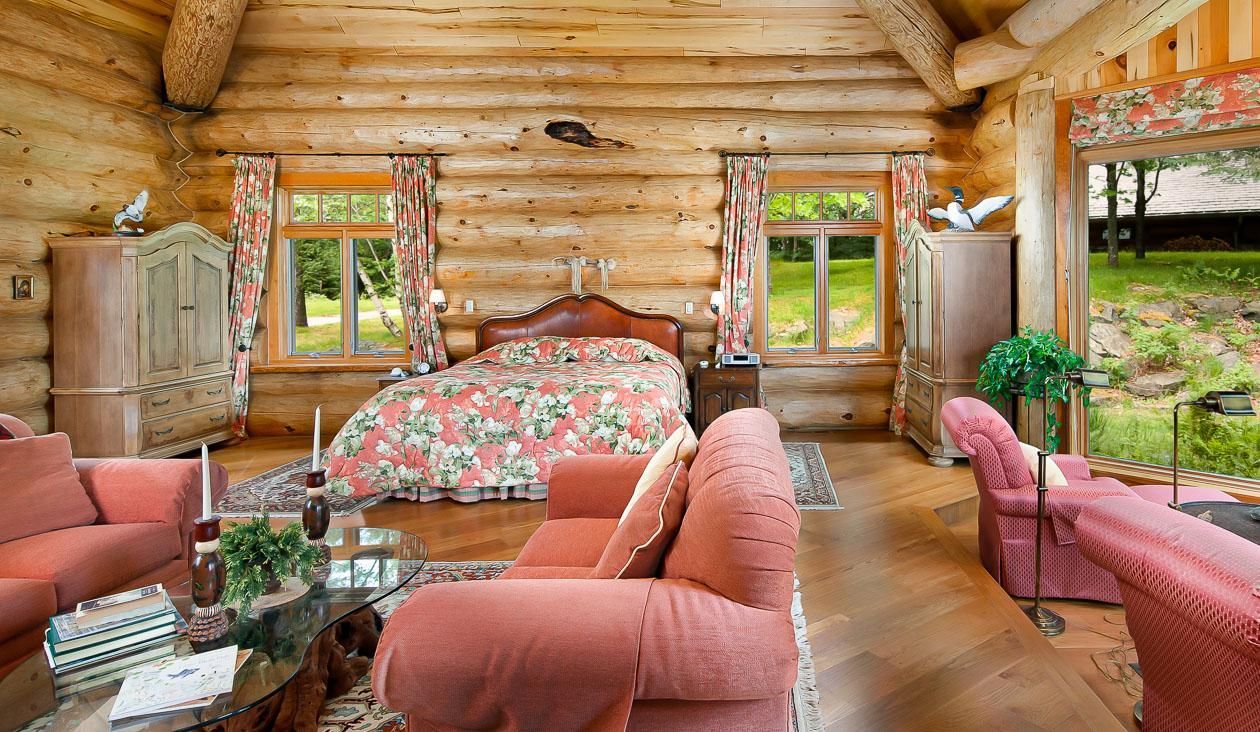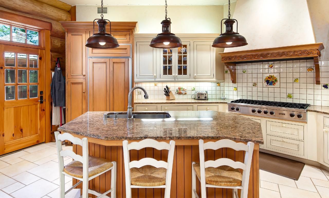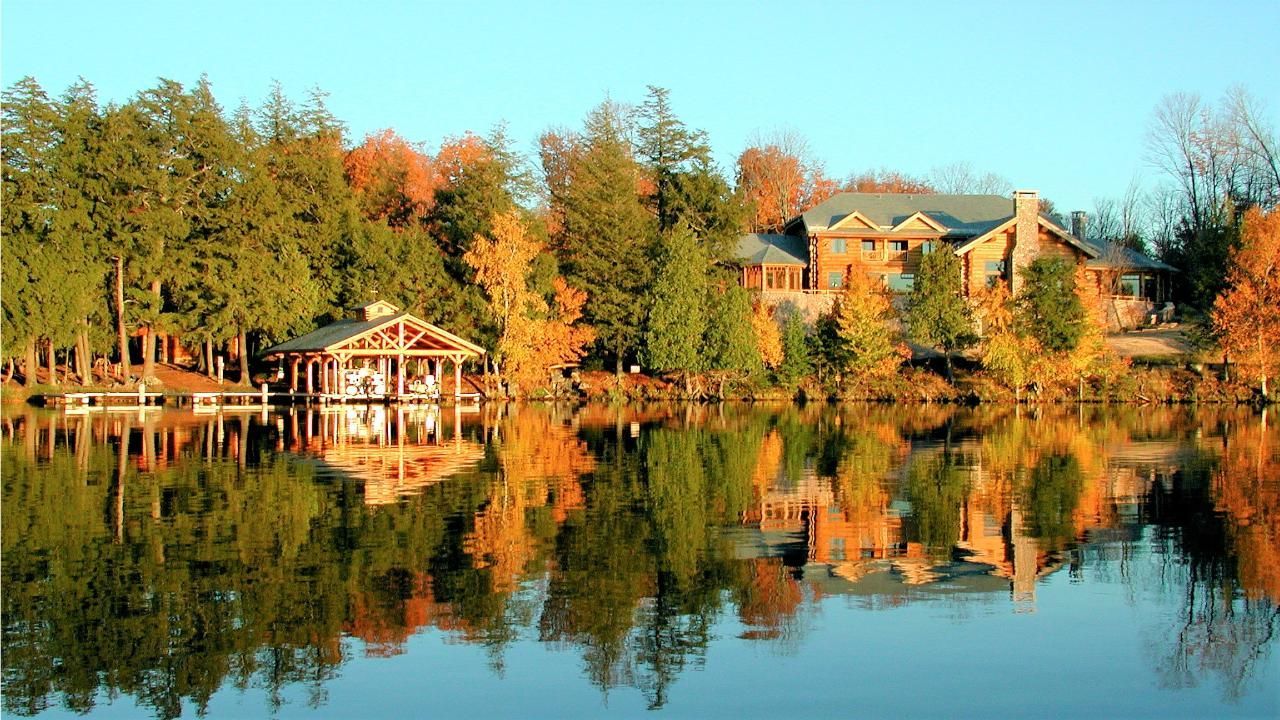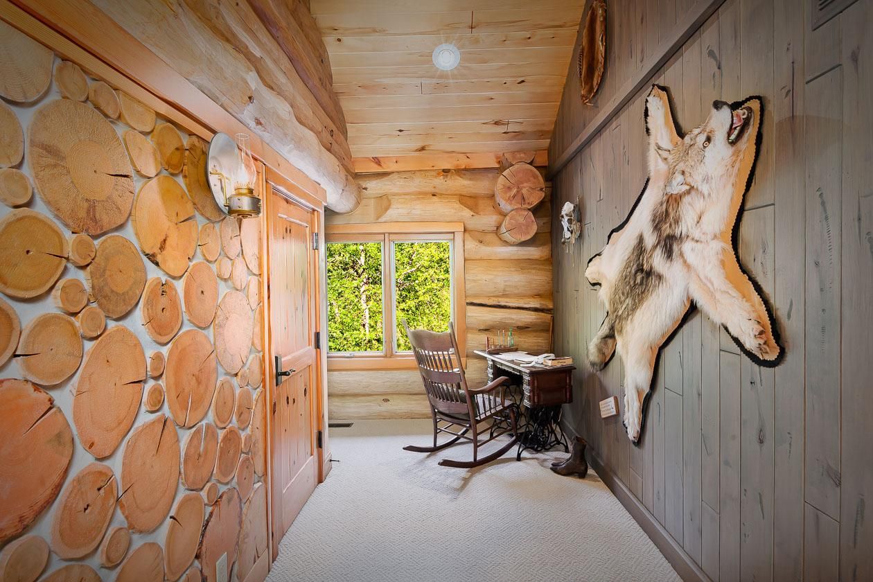 Upon arrival, guests are greeted by handcrafted double doors that open into a spectacular great room with 32-foot cathedral ceilings and a floor-to-ceiling Fieldstone wood fireplace. The wall of windows facing the lake provides breathtaking views and fills the space with natural light.