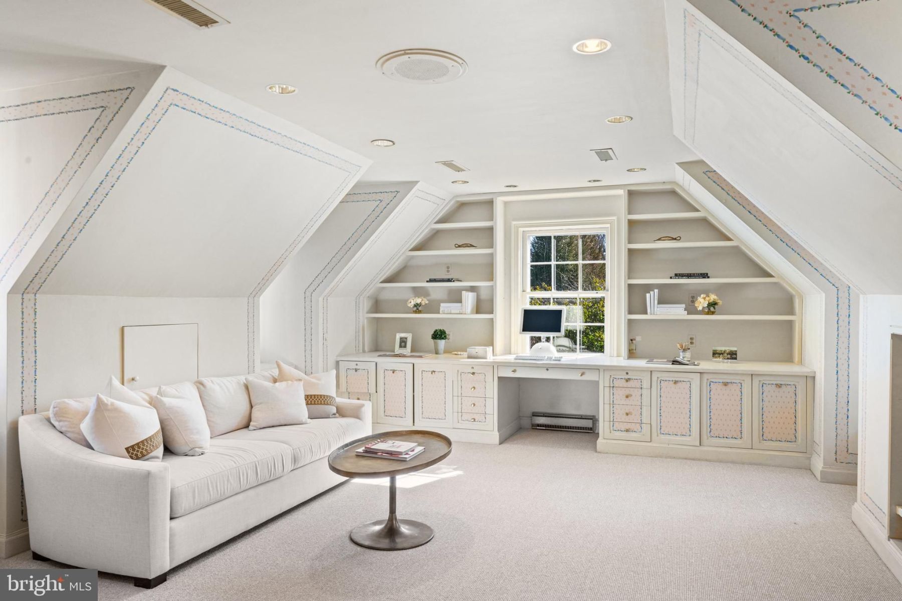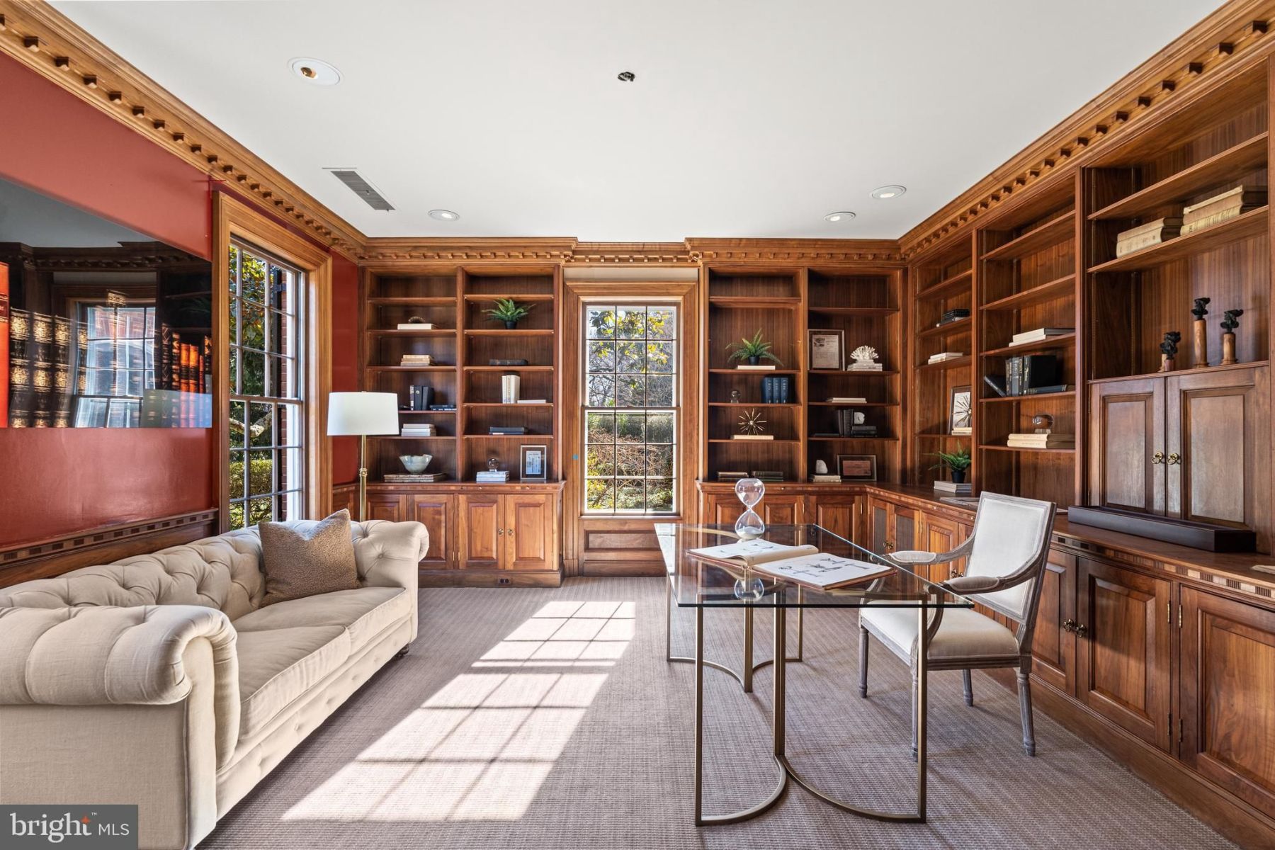 This captivating estate welcomes you with a lush green entry via a private stone circular drive, crossing over a small stone bridge and stream. The residence, built by one of Washington’s most notable real estate developers, exudes charm and character at every turn.