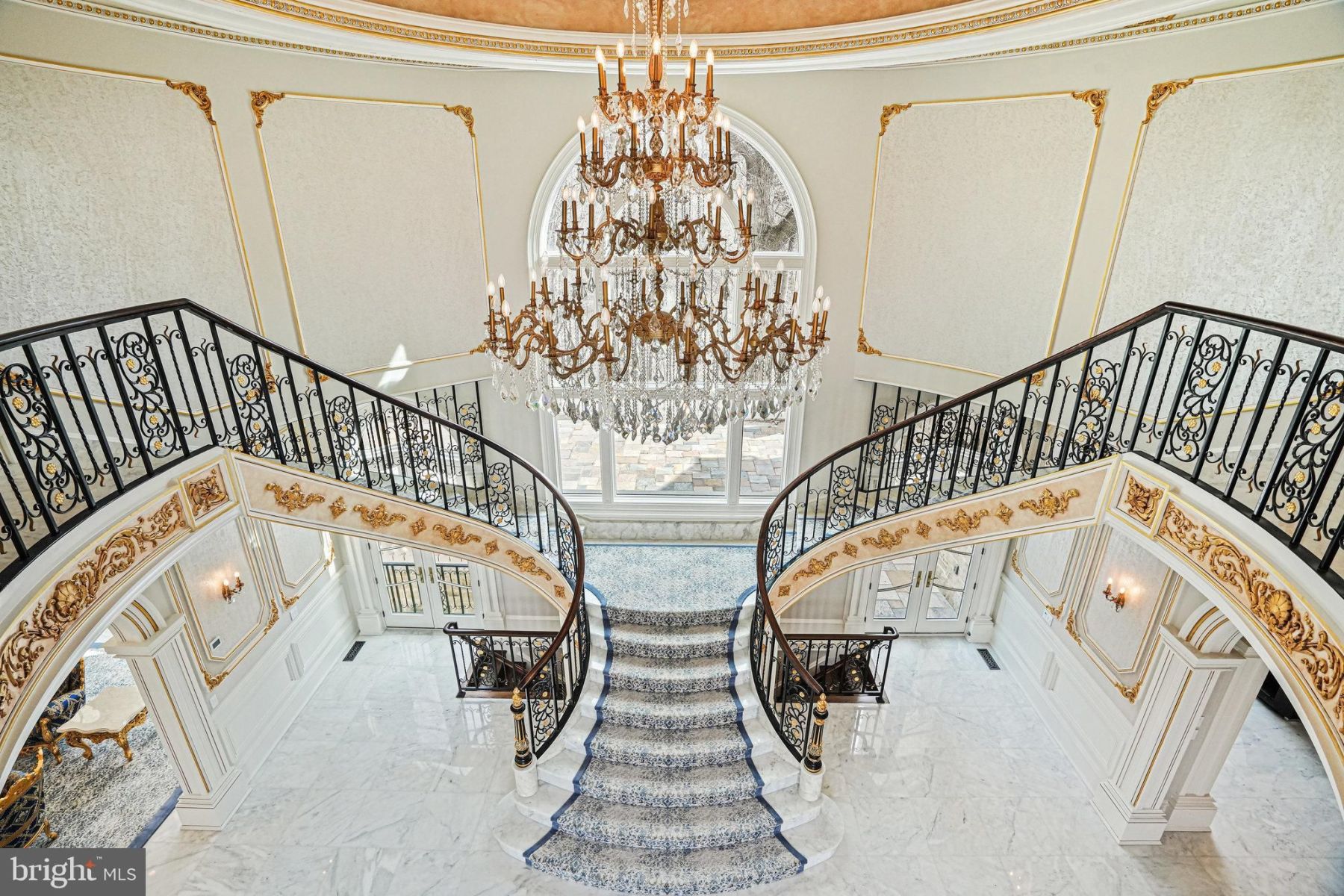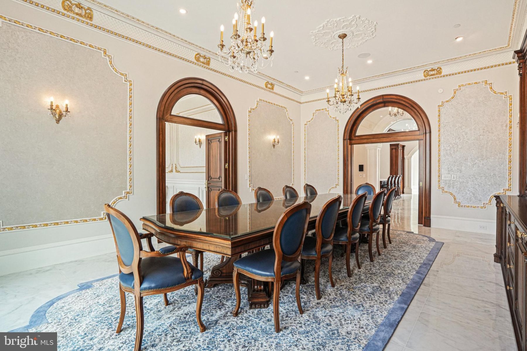 - High ceilings, custom plaster moldings, and Italian marble flooring create an atmosphere of timeless elegance.