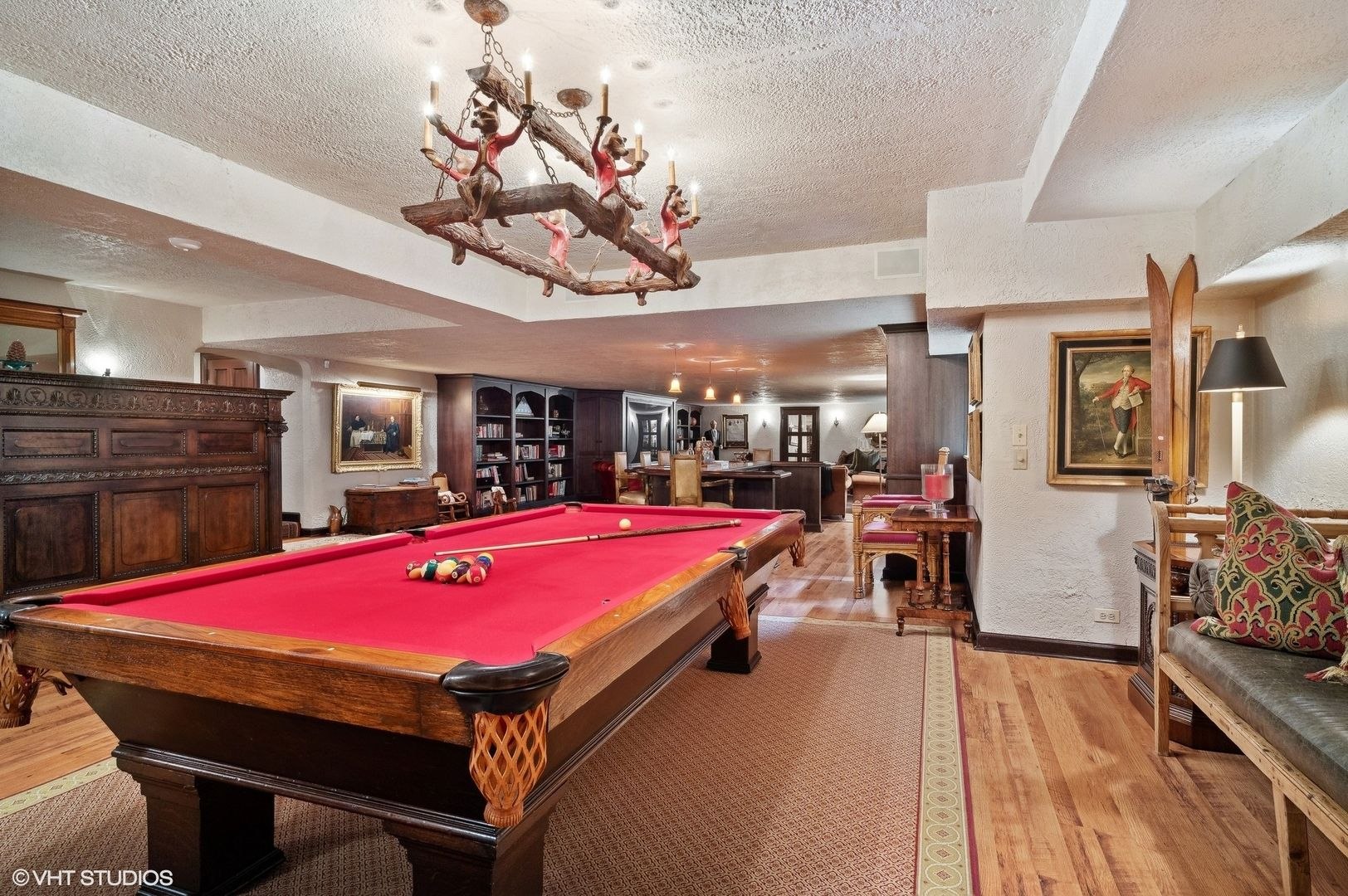 • The lower level boasts a game area, great room with oversized fireplace, full bar, exercise room, organ, wine cellar, laundry, and storage room, providing endless entertainment options.
