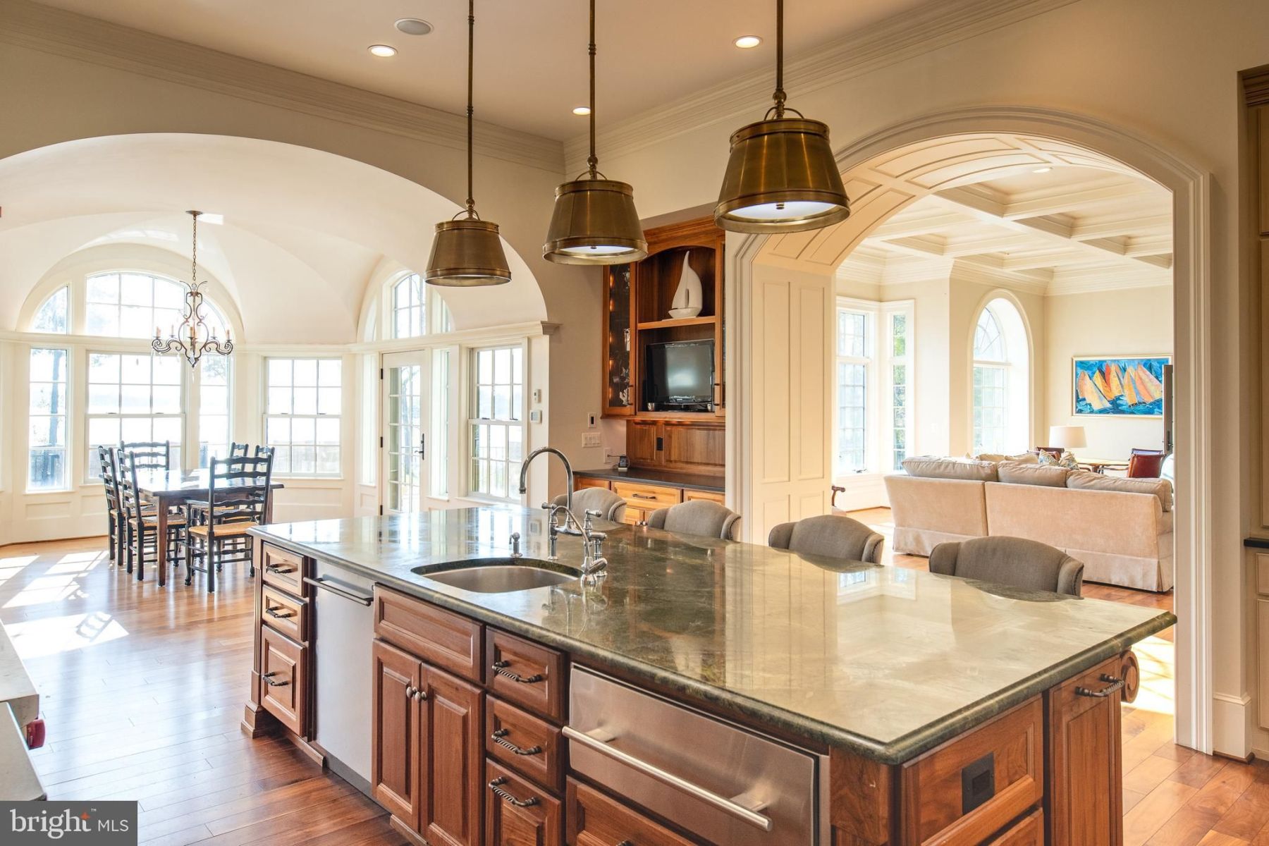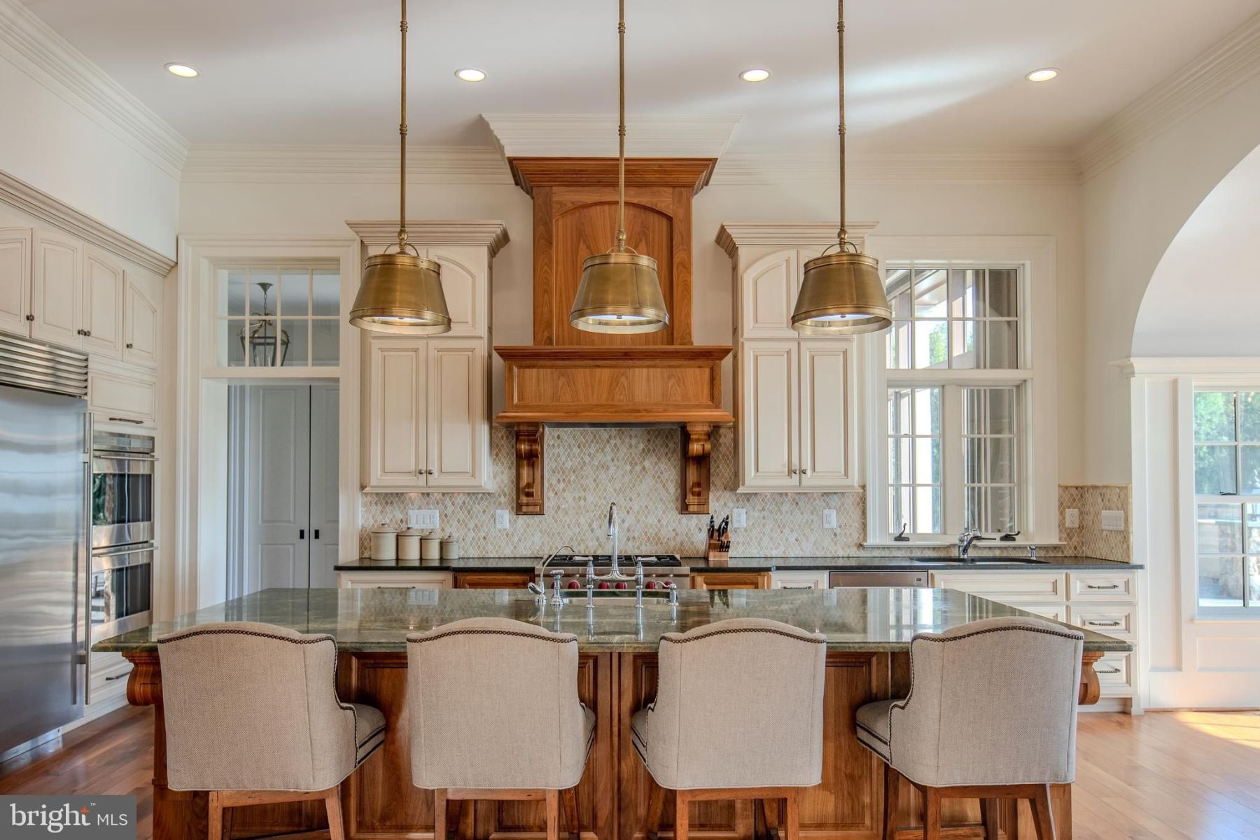 • Gourmet kitchen featuring top-of-the-line appliances, custom cabinetry, massive center island, and a breakfast room with a groin vault ceiling.