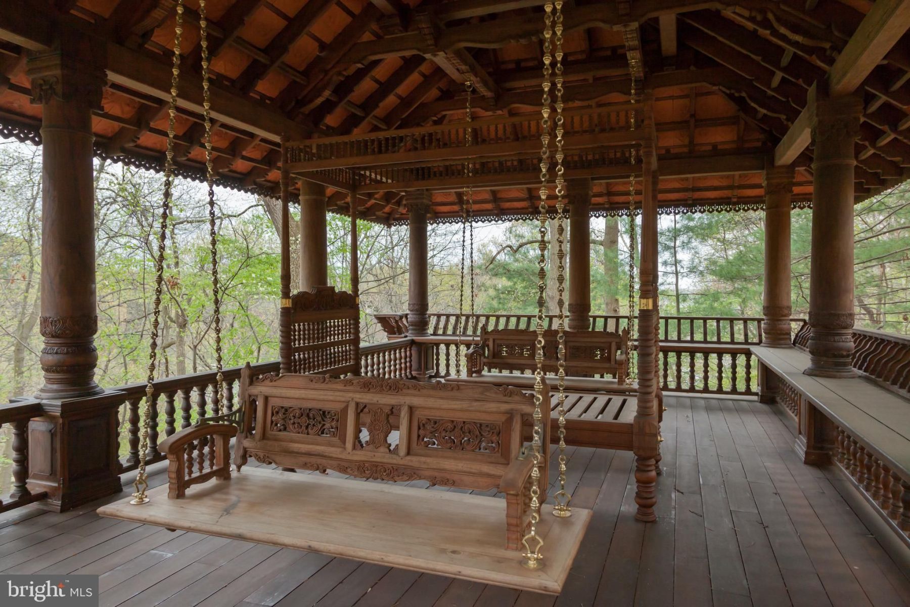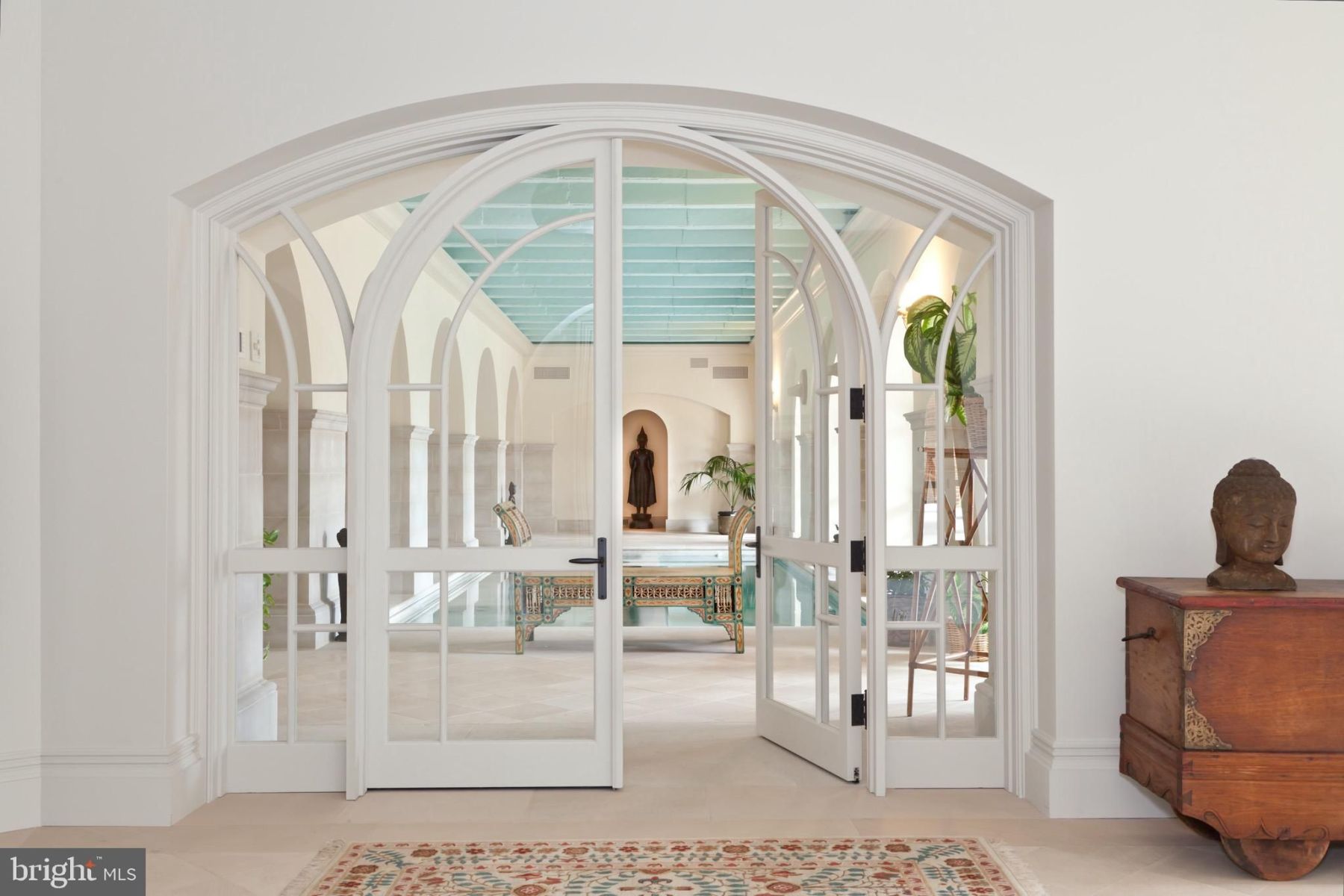 The interior of “The Friary” exudes elegance and sophistication, seamlessly blending classic Georgian style with modern amenities. With meticulous attention to detail, this 35,000+ sqft residence offers an array of luxurious features, including original heart pine floors, formal dining room and parlor, commercial-size gourmet kitchen, indoor spa, game room, wine cellar, and a secret vault. The main core of the home features a limestone rotunda leading to the impeccably appointed guest wing and the chapel-turned-ballroom, adorned with herringbone teak floors and arched double doors.