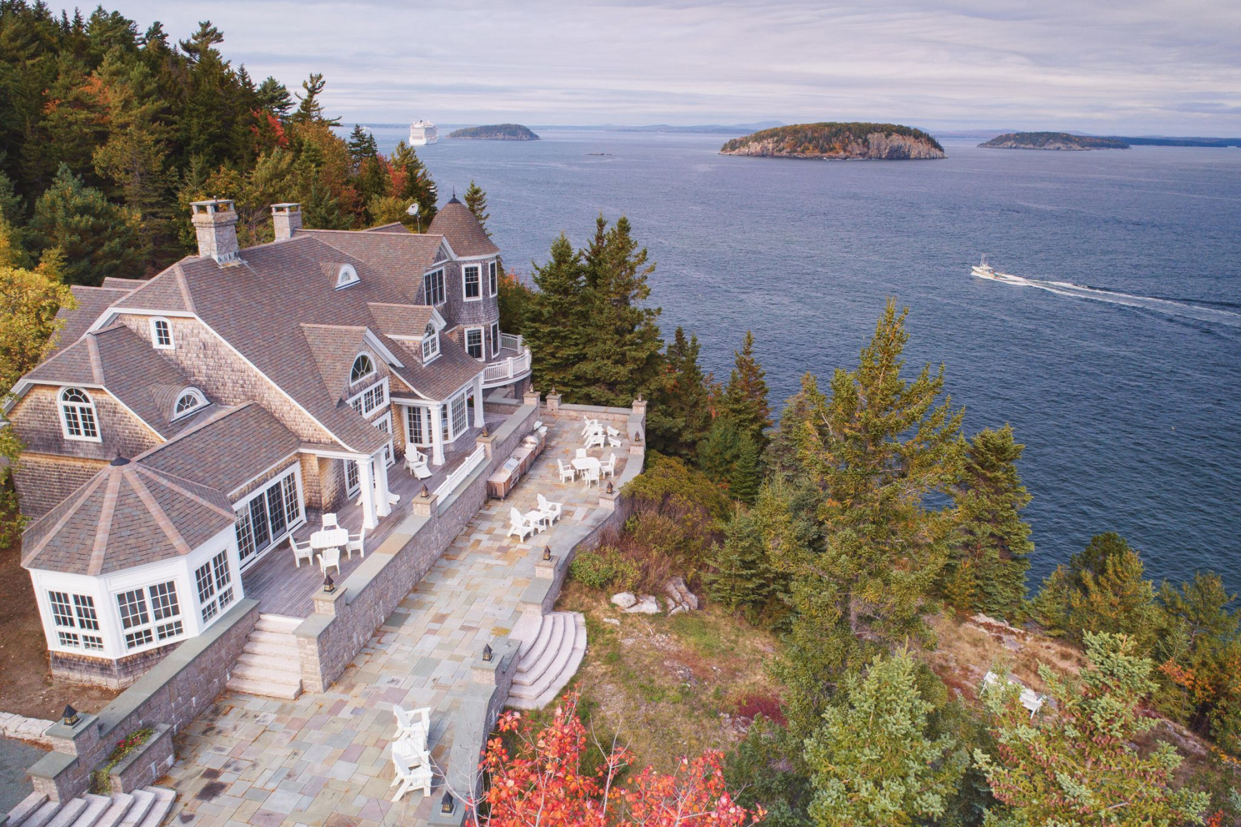 Experience the epitome of coastal living with breathtaking views of Frenchman Bay and the surrounding islands, creating a serene and tranquil atmosphere.