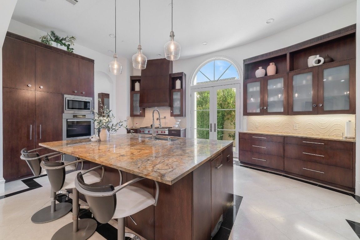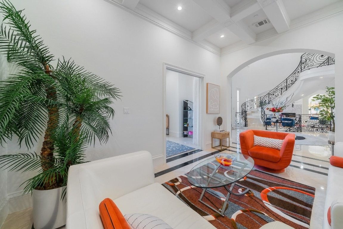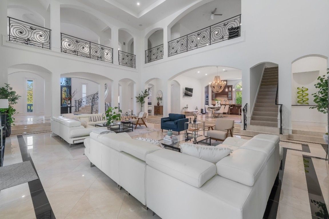 - Situated on a half-acre lot, this palatial estate boasts six living areas, including a formal dining room, office, and multiple entertaining spaces.