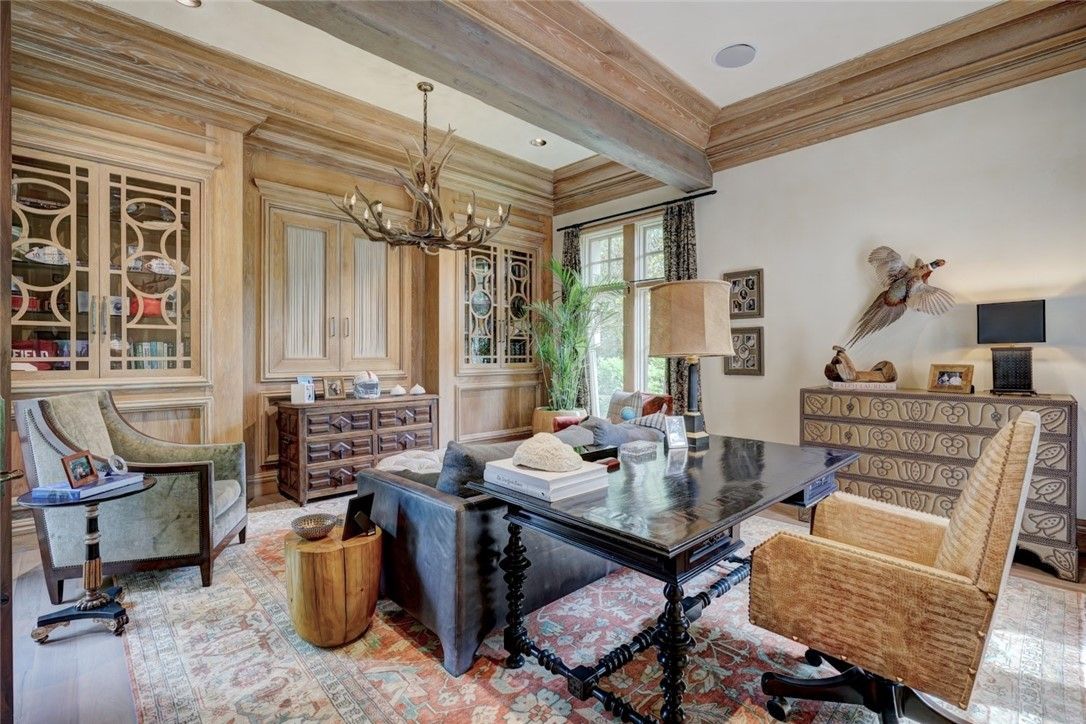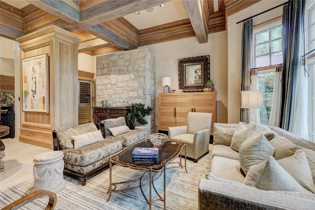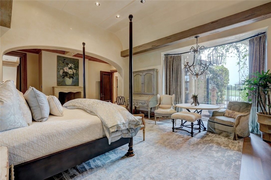 Upon entry, the grandeur of this estate unfolds with a modern take on European architecture. The interior features a seamless blend of opulent elements, including custom ironwork, imported beams, designer chandeliers, handcrafted trim work, and Venetian plaster walls and ceilings throughout. The expansive living spaces are adorned with five fireplaces, adding warmth and sophistication to every room.