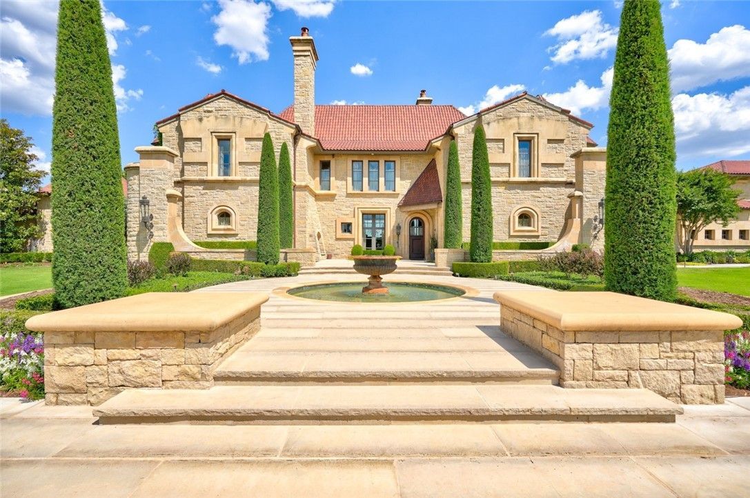 Designed for entertaining on a grand scale, this estate boasts an array of amenities that cater to the discerning homeowner. The back wing overlooks a Koi Pond and a three-tiered pool, creating an idyllic setting for gatherings. A fully equipped workout room offers panoramic views of the manicured backyard, lake, and golf course. The Chef’s Kitchen features commercial-grade appliances and a walk-in pantry, perfect for culinary enthusiasts.
