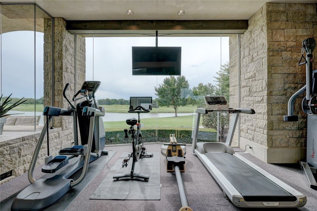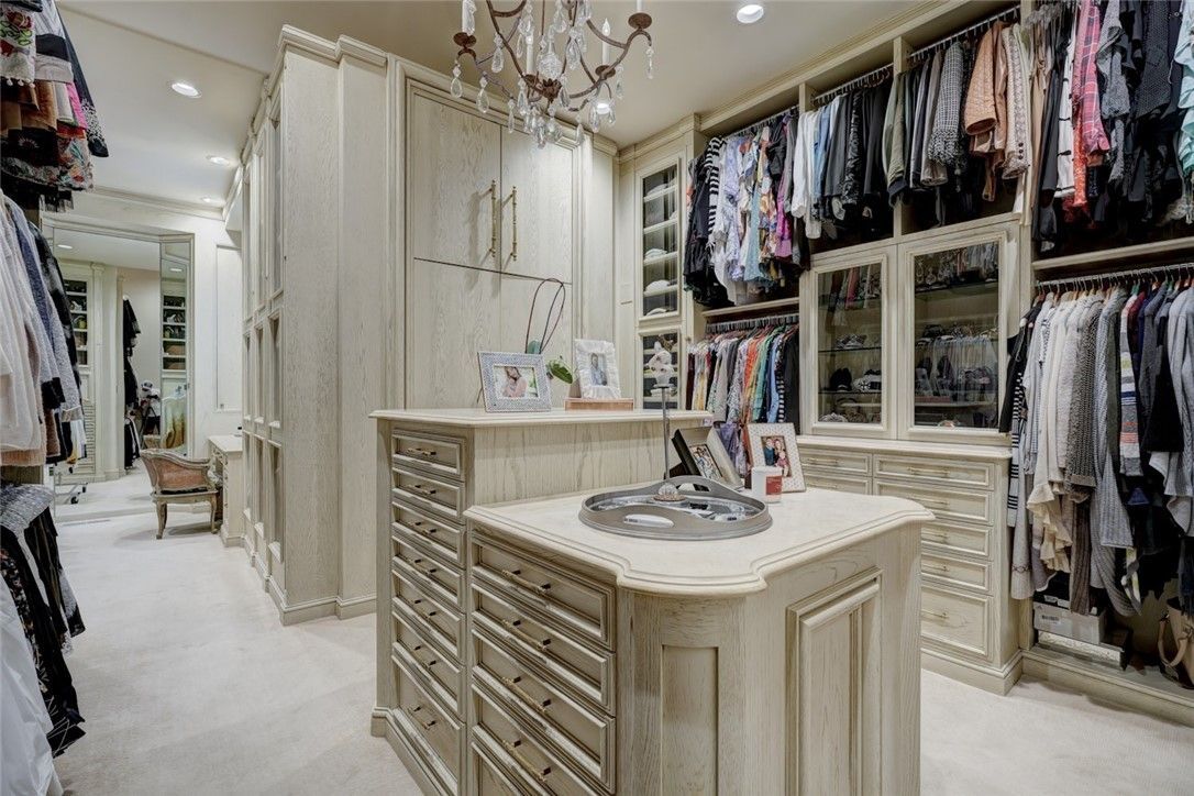 Designed for entertaining on a grand scale, this estate boasts an array of amenities that cater to the discerning homeowner. The back wing overlooks a Koi Pond and a three-tiered pool, creating an idyllic setting for gatherings. A fully equipped workout room offers panoramic views of the manicured backyard, lake, and golf course. The Chef’s Kitchen features commercial-grade appliances and a walk-in pantry, perfect for culinary enthusiasts.