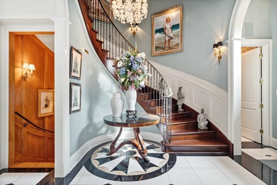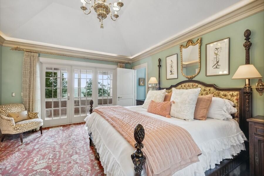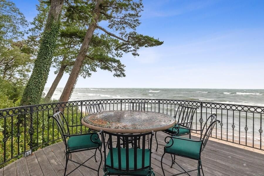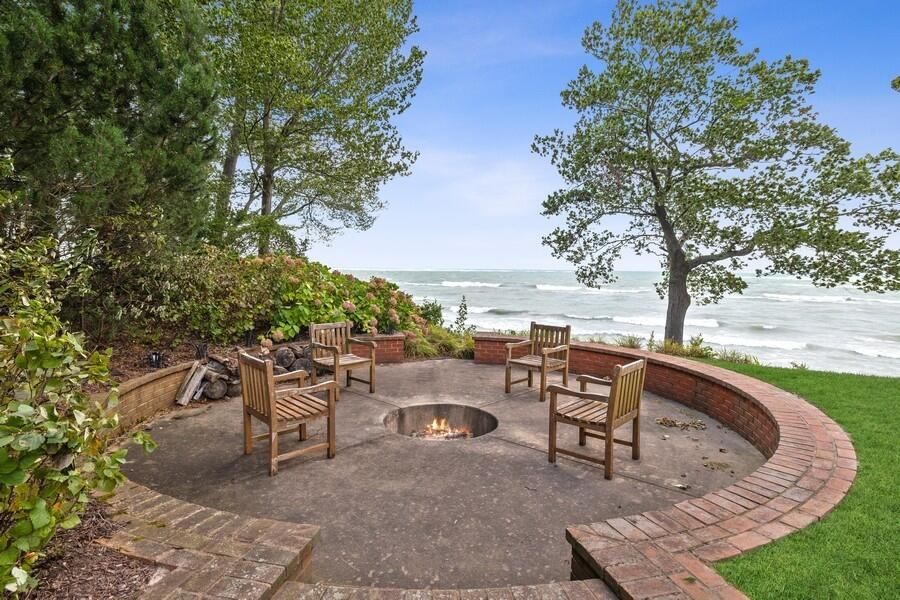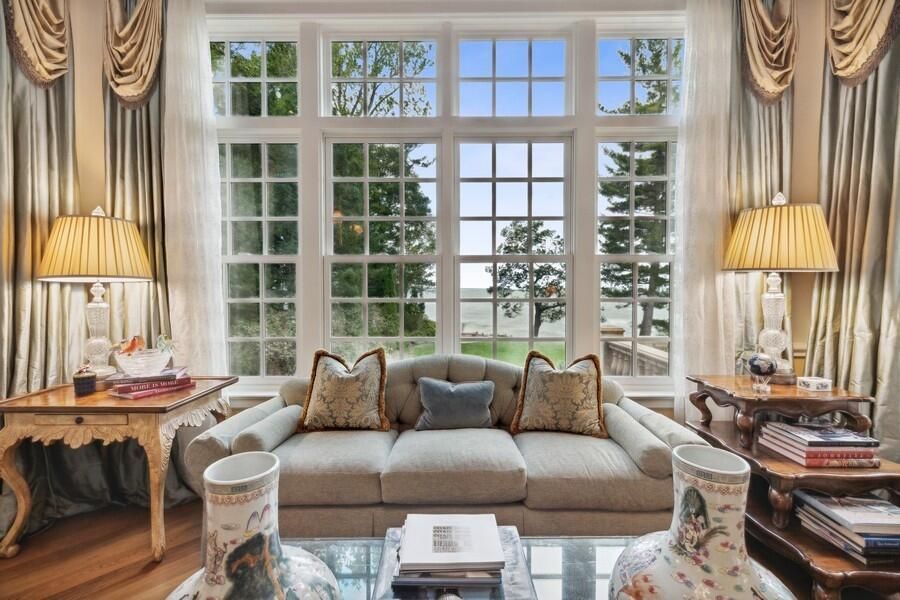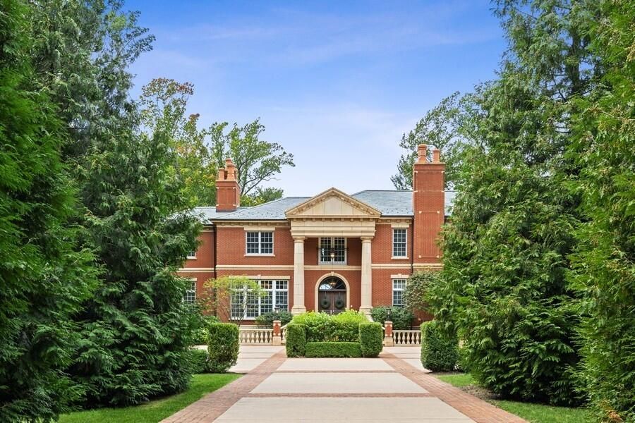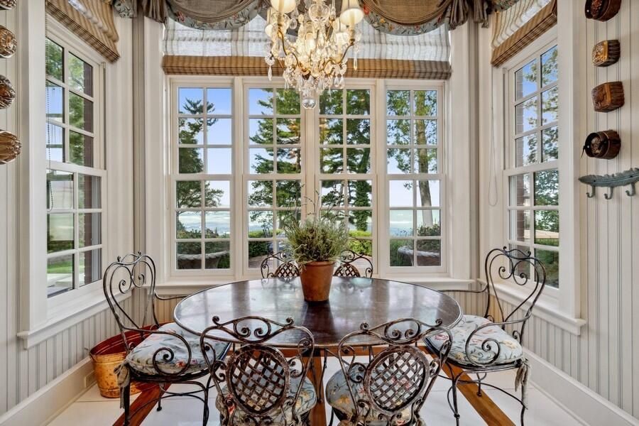 This stately Georgian estate boasts over 148 feet of pristine Lake Michigan frontage, offering breathtaking views and direct access to the water. The property features a 40-foot swimming pool and spa, overlooking a vast sandy beach, providing the ultimate retreat for relaxation and recreation.