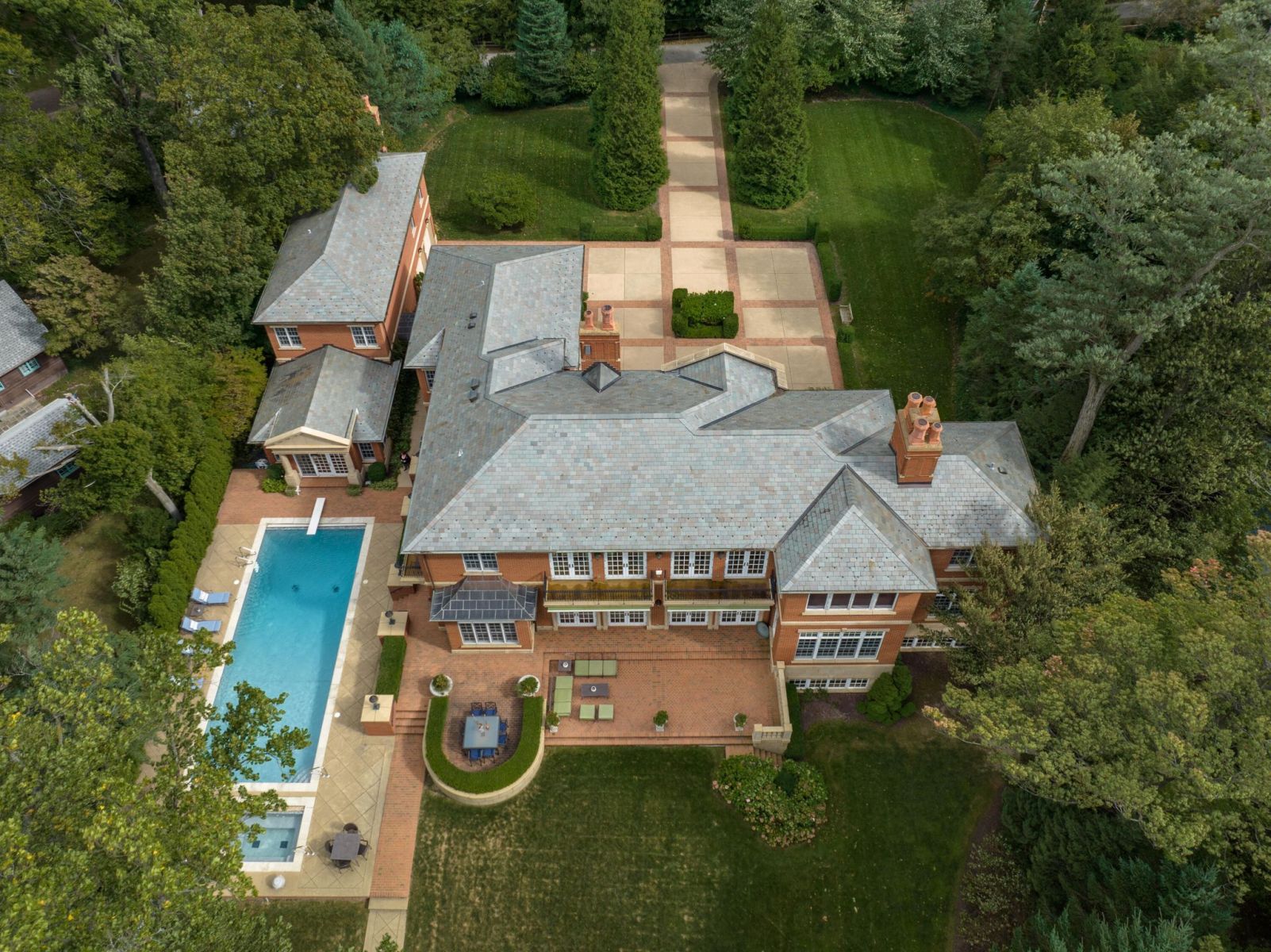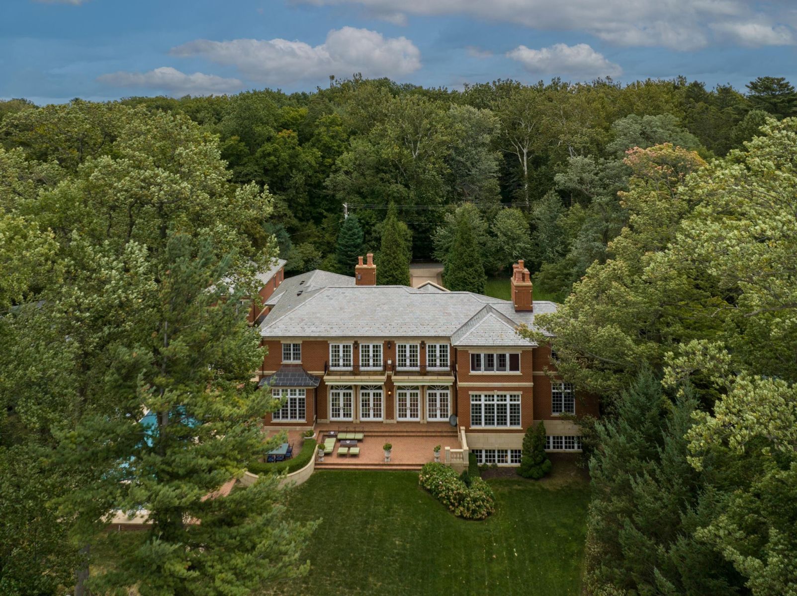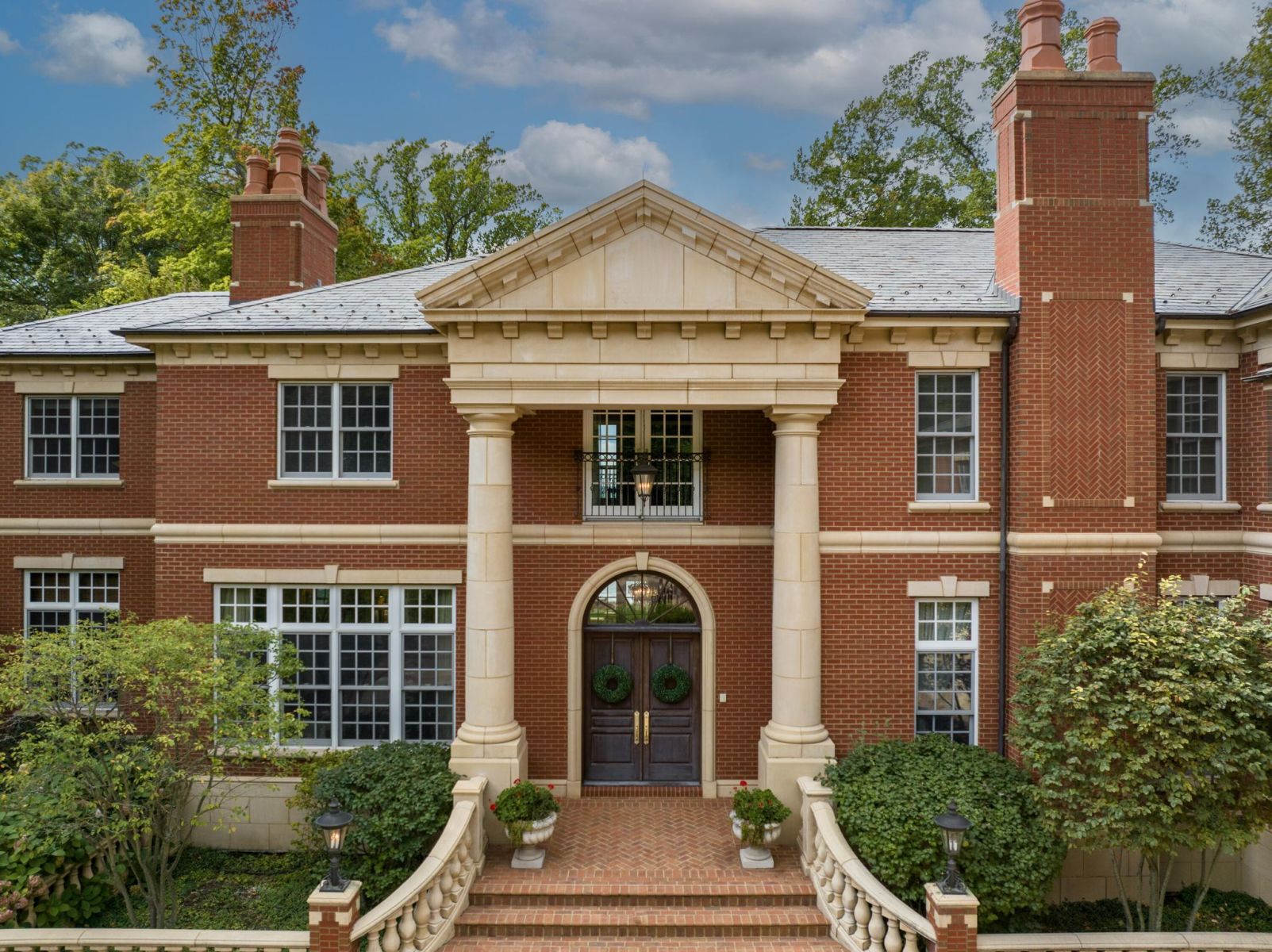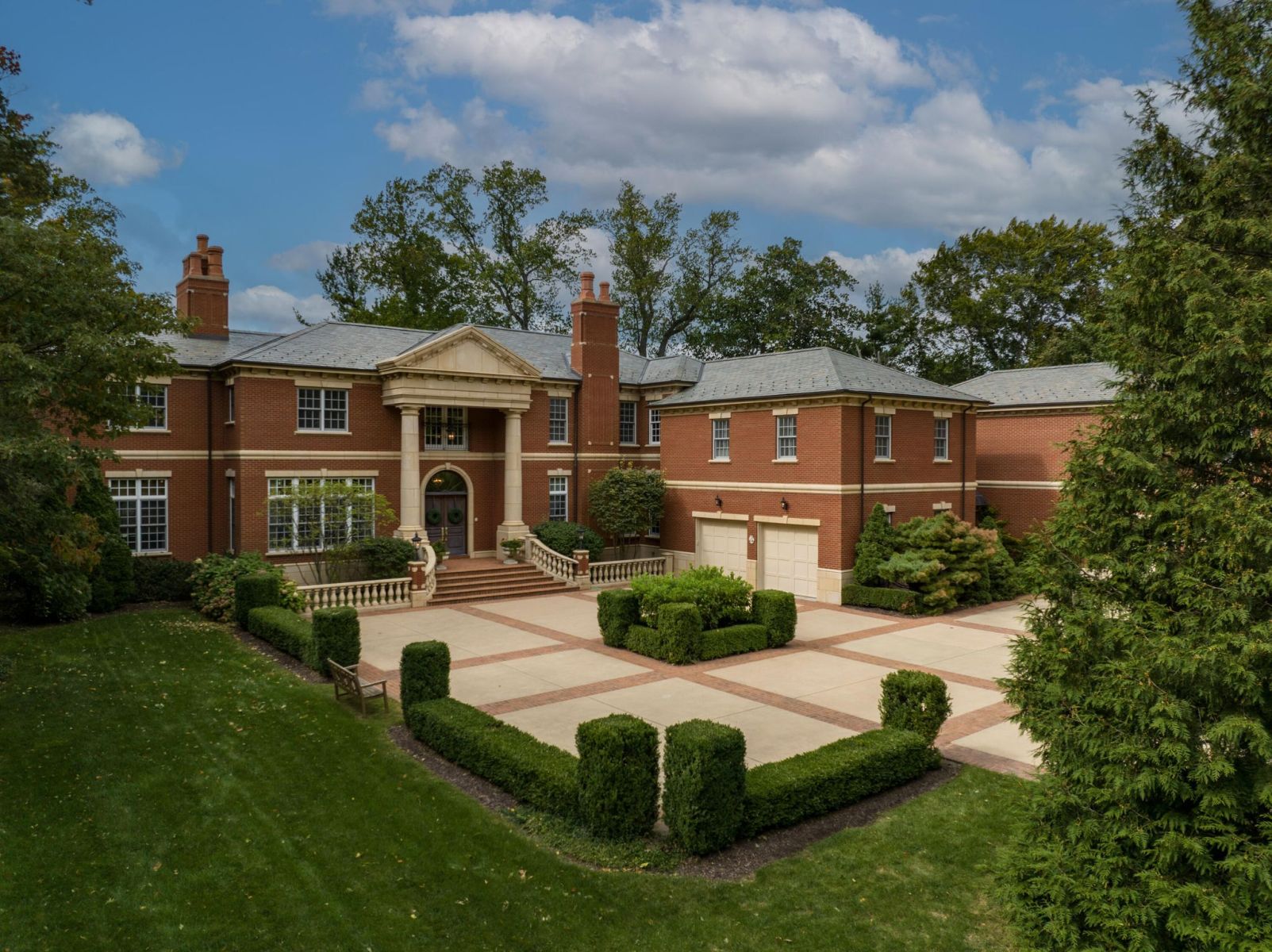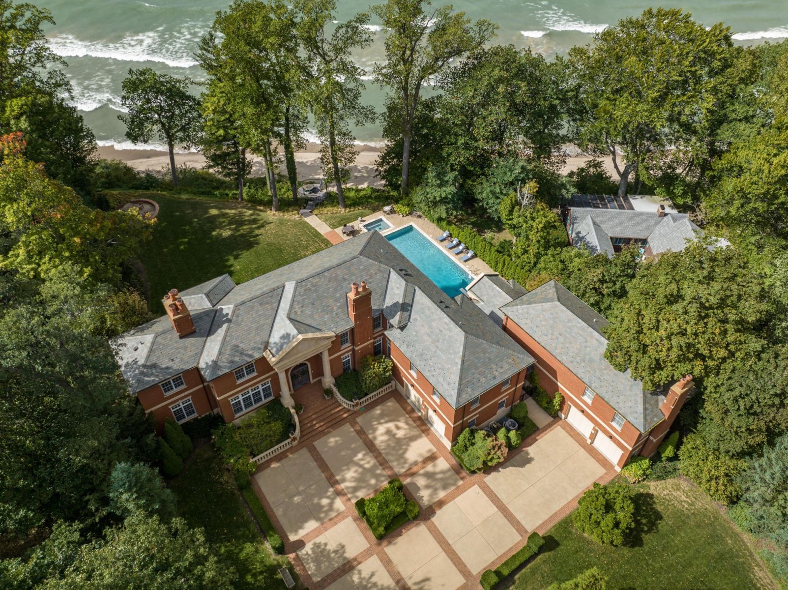 This stately Georgian estate boasts over 148 feet of pristine Lake Michigan frontage, offering breathtaking views and direct access to the water. The property features a 40-foot swimming pool and spa, overlooking a vast sandy beach, providing the ultimate retreat for relaxation and recreation.