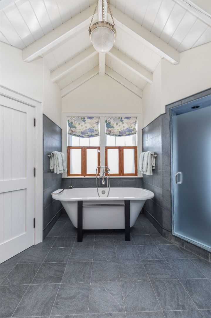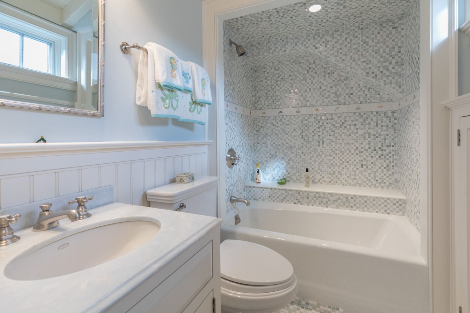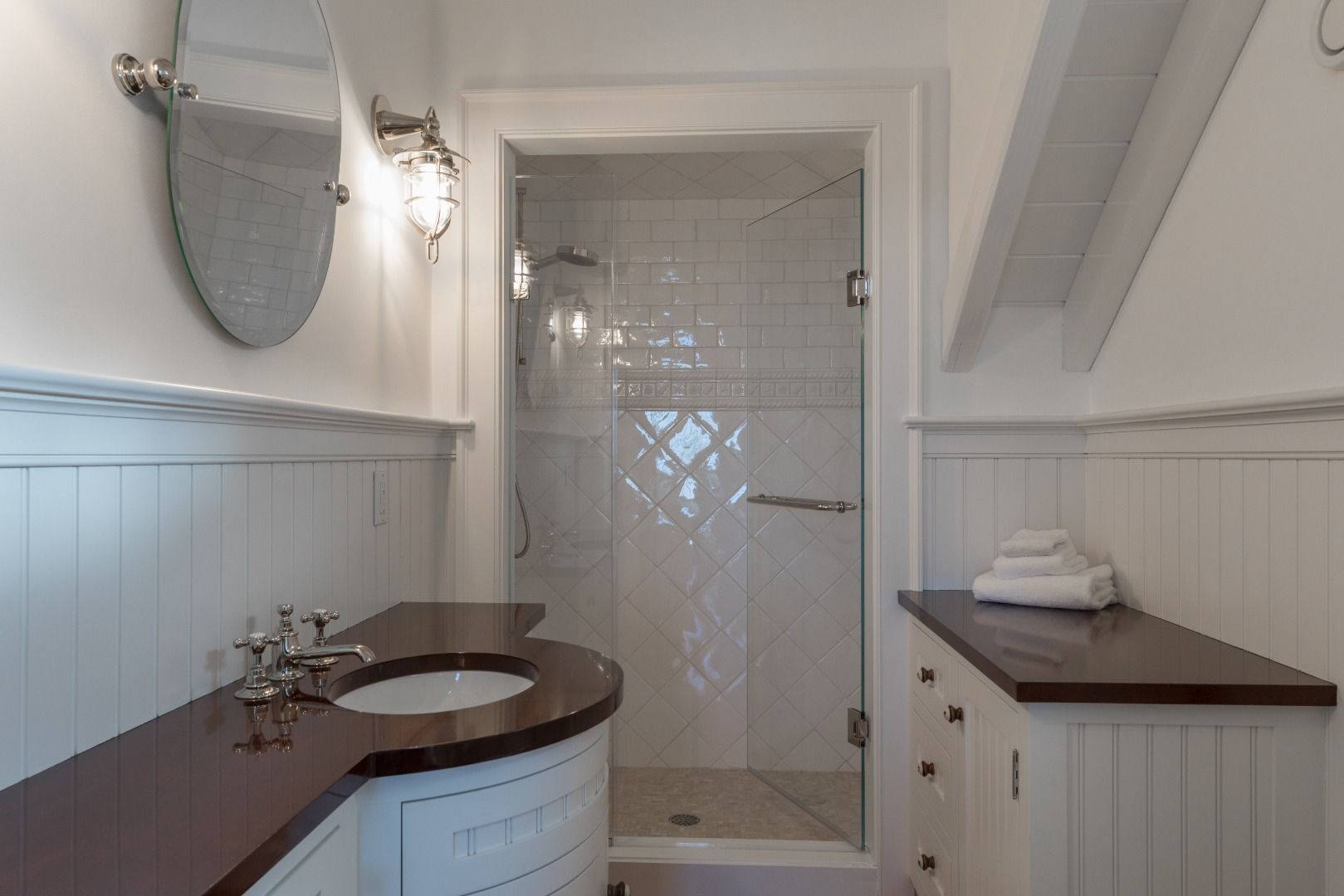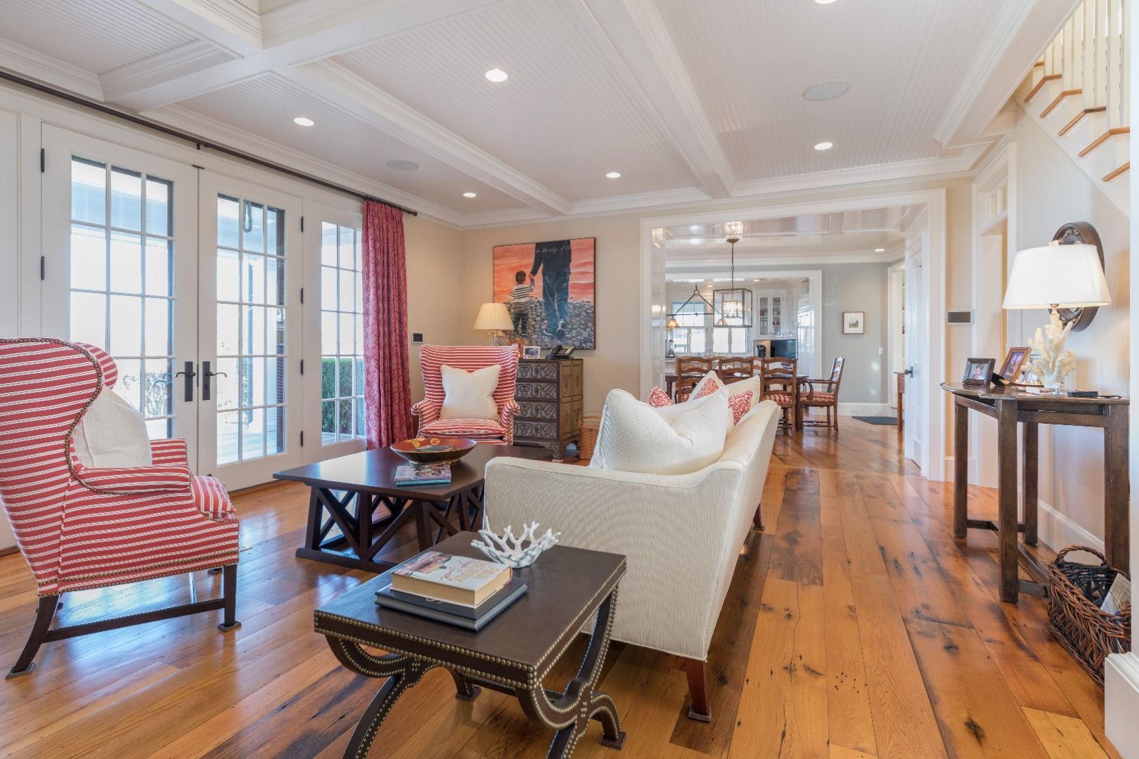 • Crafted by Residential Artisans O’Conner Custom Builders and designed by renowned architect Chip Webster, this estate boasts nautical design elements, high ceilings, and multiple transom windows, creating an open and airy ambiance.