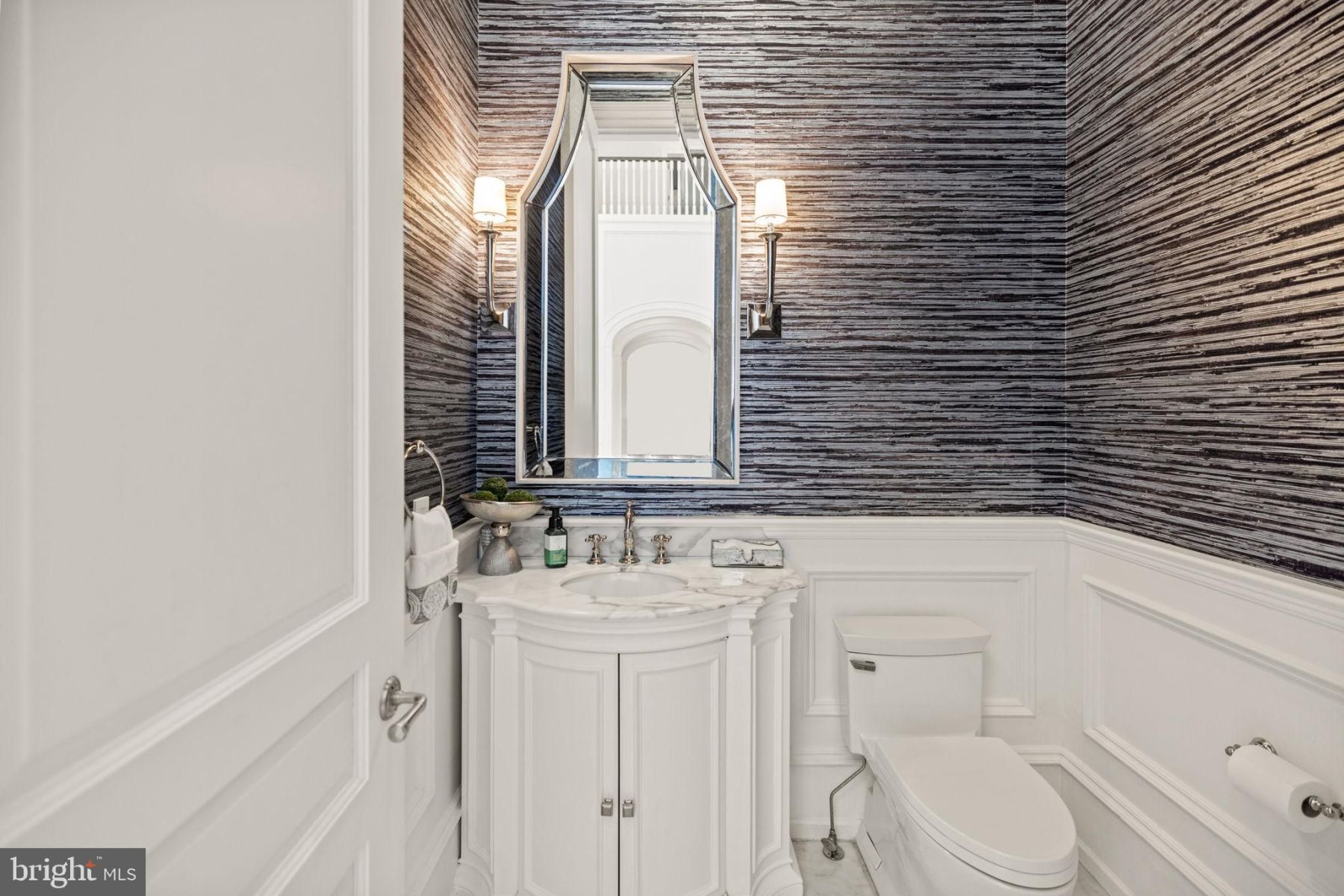 From the moment you step inside the grand, sun-filled foyer with its marble floors and 24-foot ceilings, you are enveloped in a sense of grandeur. Meticulously crafted oversized millwork and a dramatic curved staircase set the tone for what lies beyond.