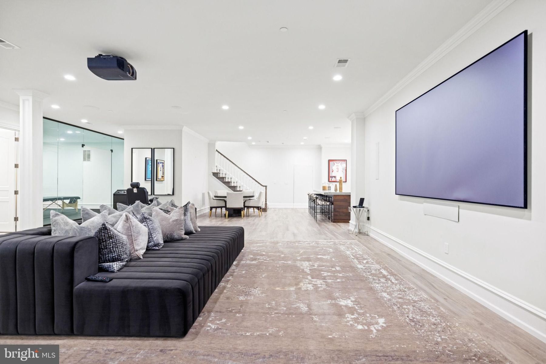 Working from home is a pleasure in the study with a private conference room, separate entrance, and private patio offering a serene escape. A dedicated children’s playroom adds a playful touch to the informal area of the main level.