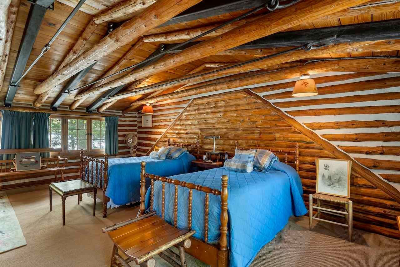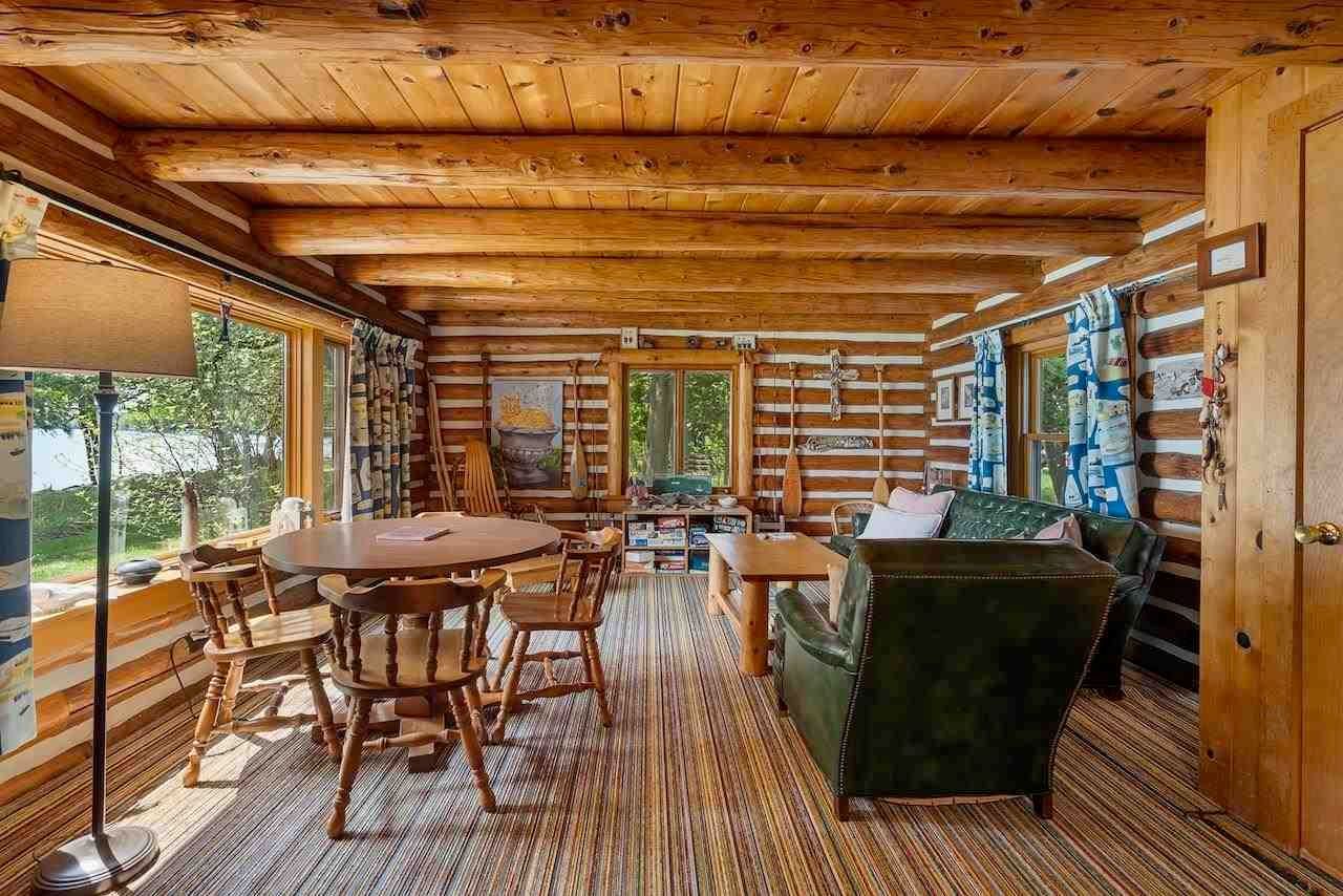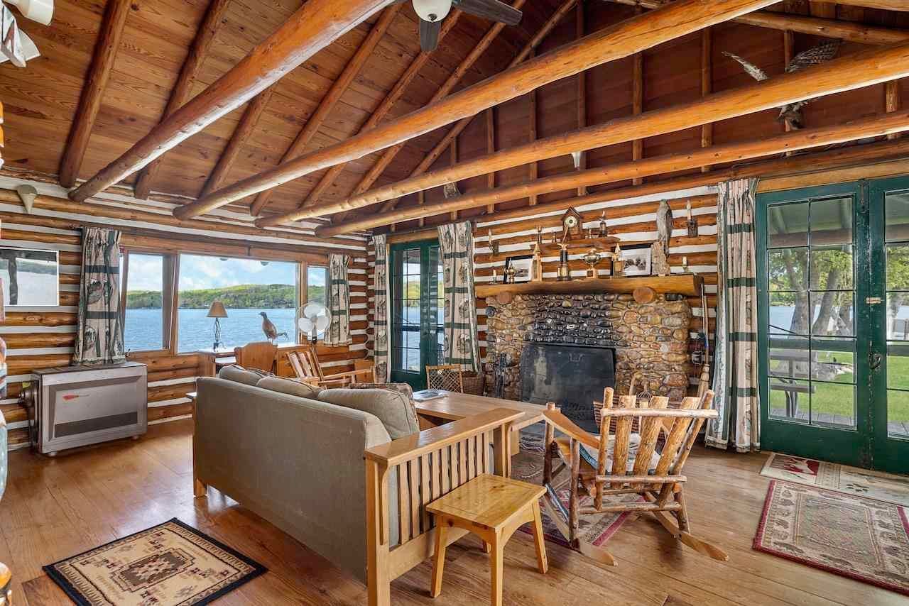 Nestled on a distinct peninsula, Randall’s Point boasts an expansive 2,170 feet of waterfrontage, offering breathtaking views of both sunrise and sunset. Steeped in history, the property was purchased by the Randall family in the 1900s, with notable connections to renowned author Ernest Hemingway. The main log home, built in the 1970s and expanded in 2001, exudes rustic elegance with gleaming hardwood floors, a stone fireplace, and walls of windows overlooking the lake just 25 feet away.