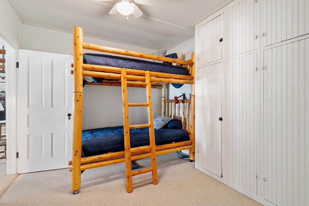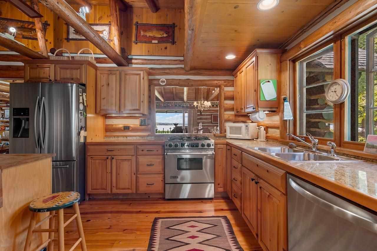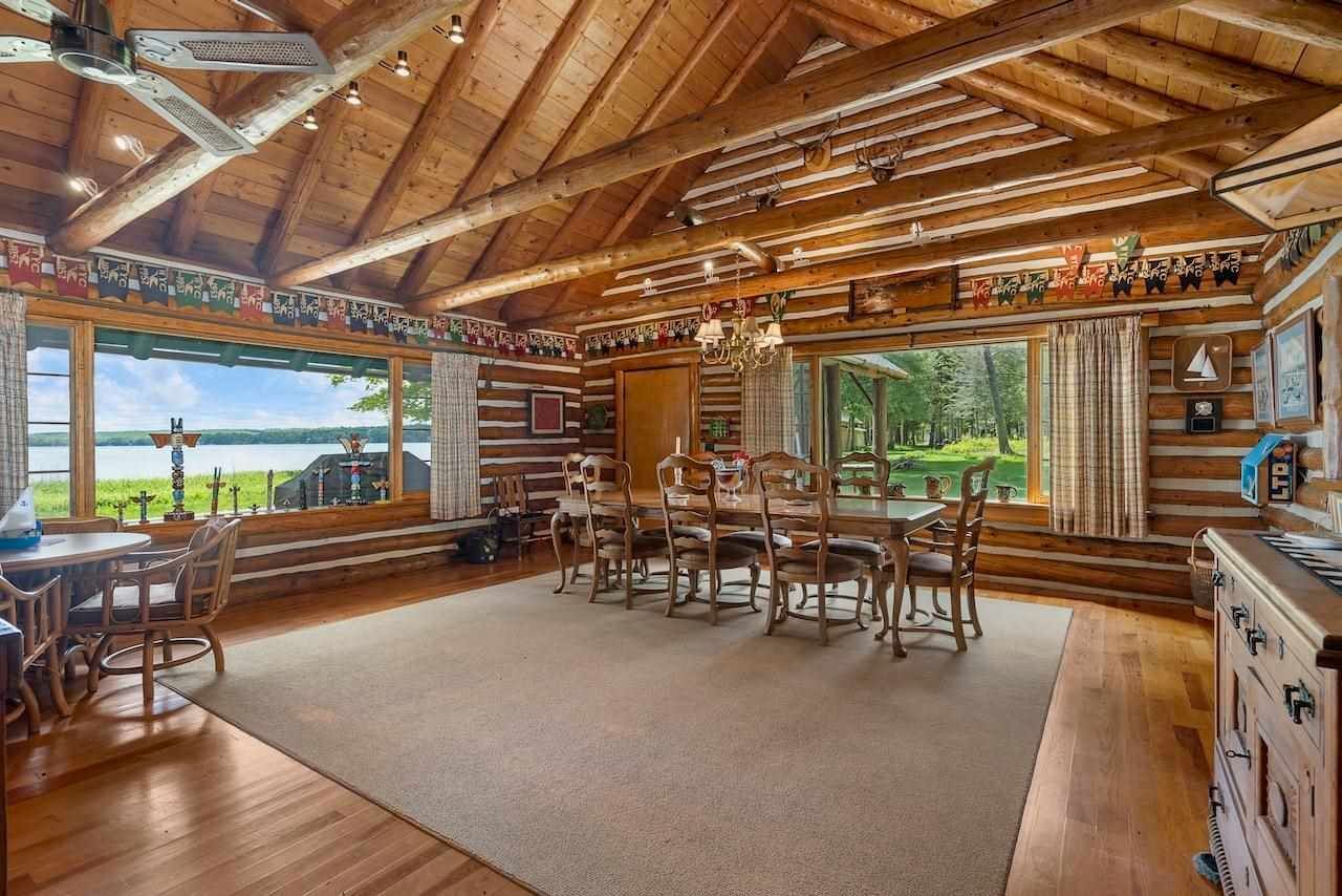 Nestled on a distinct peninsula, Randall’s Point boasts an expansive 2,170 feet of waterfrontage, offering breathtaking views of both sunrise and sunset. Steeped in history, the property was purchased by the Randall family in the 1900s, with notable connections to renowned author Ernest Hemingway. The main log home, built in the 1970s and expanded in 2001, exudes rustic elegance with gleaming hardwood floors, a stone fireplace, and walls of windows overlooking the lake just 25 feet away.