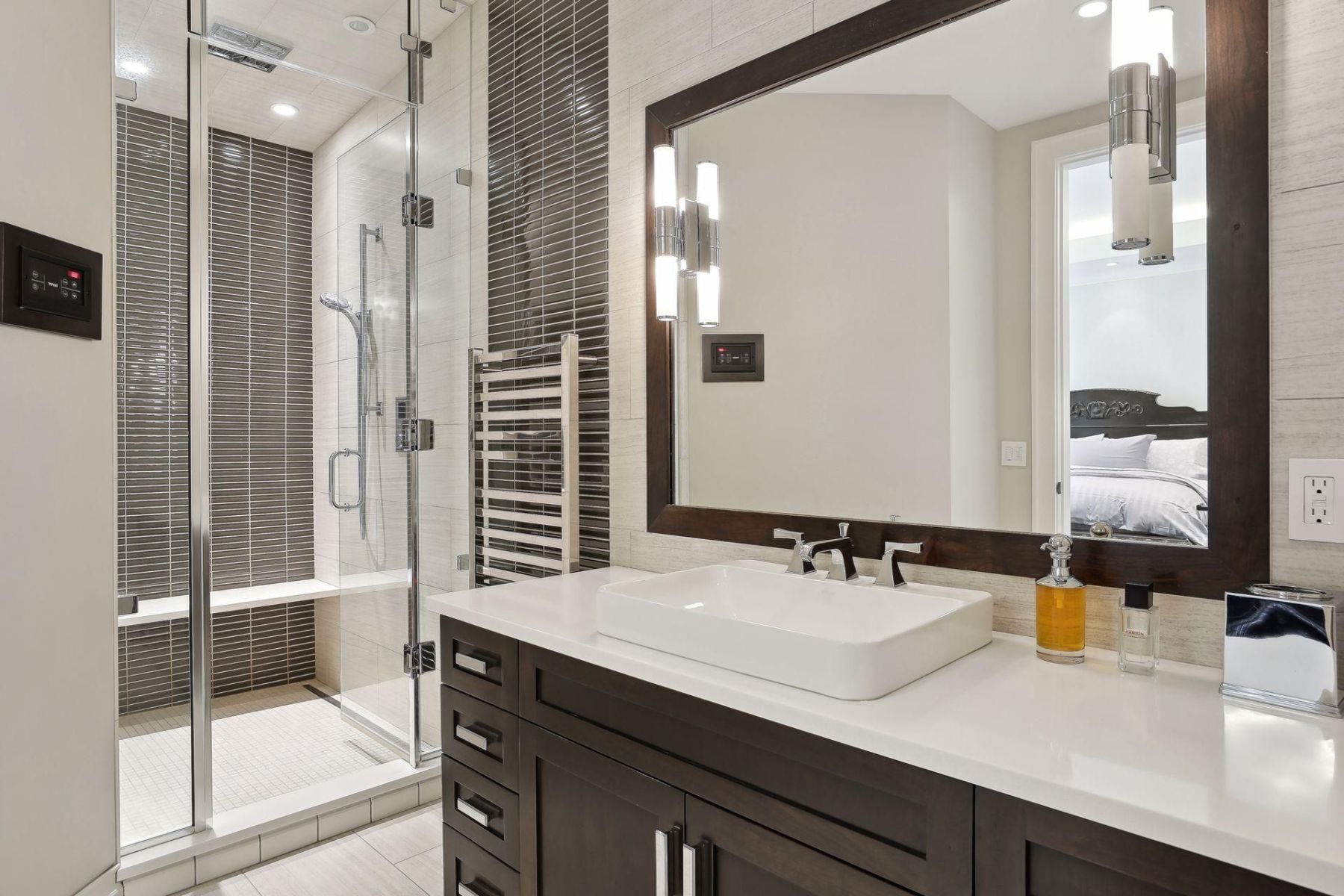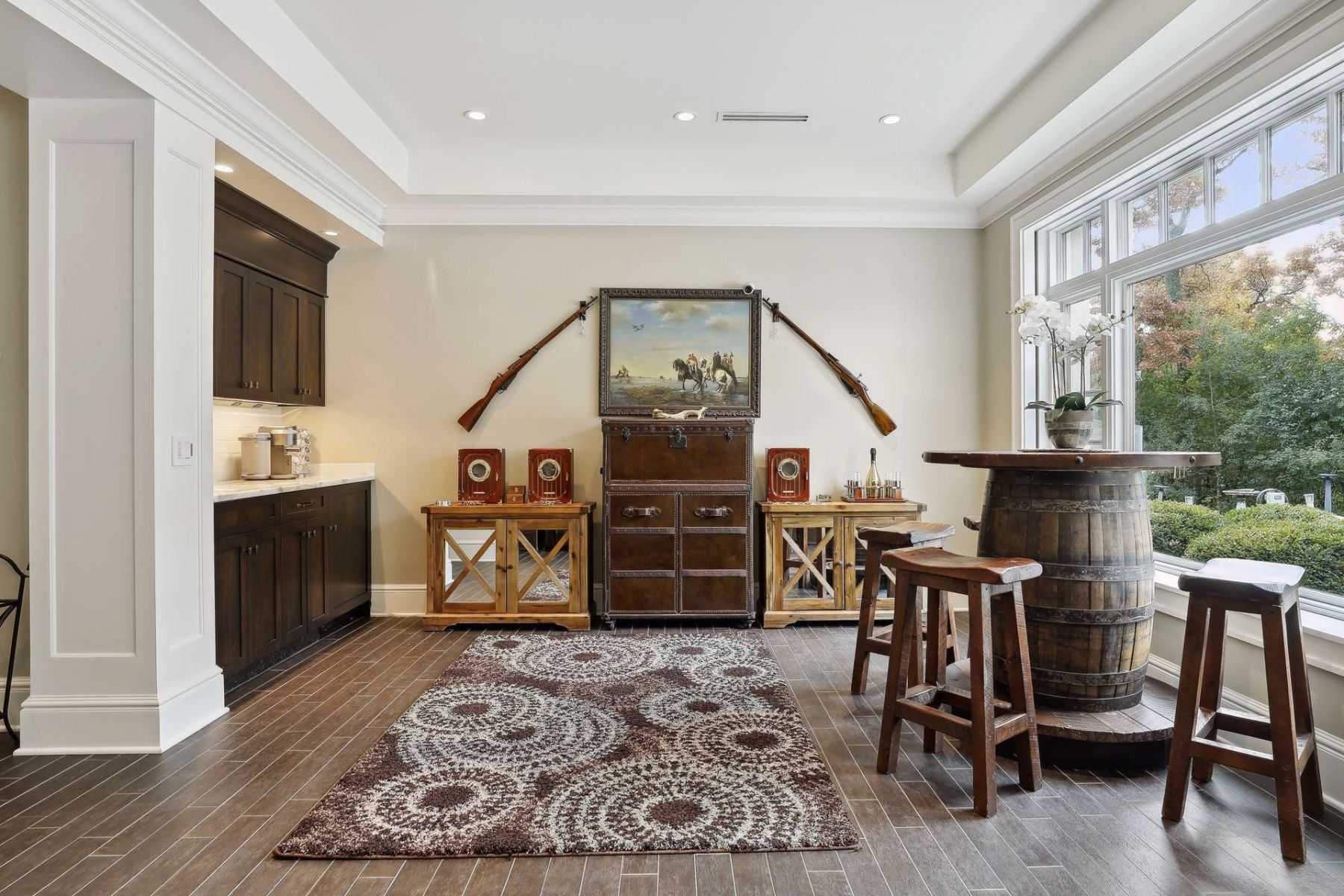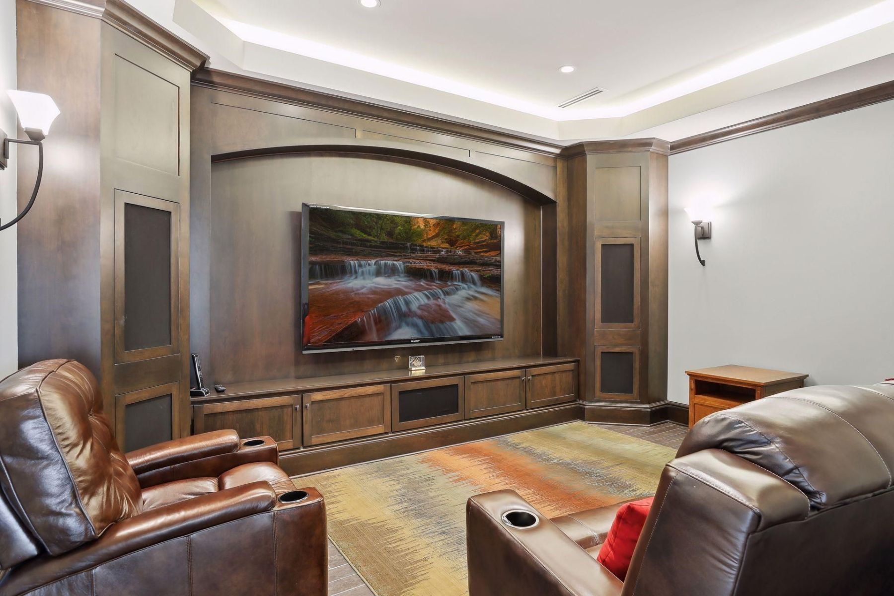 - Step inside to discover a meticulously crafted interior, complete with a theater room and heated floors throughout.