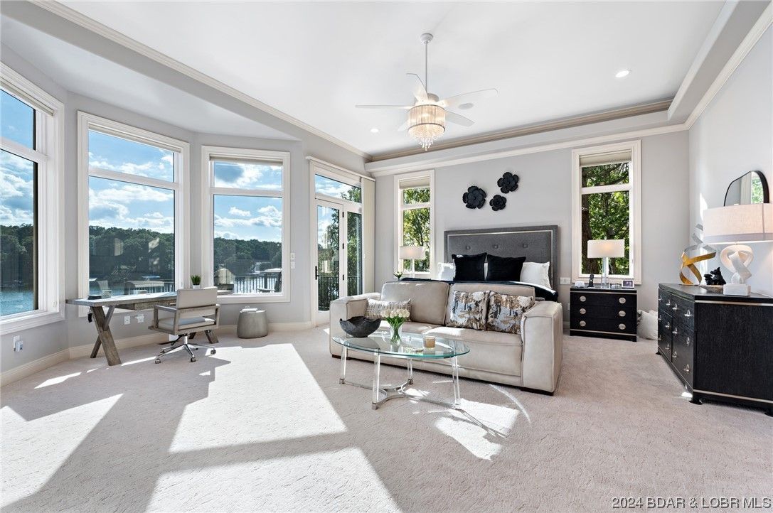 Enjoy panoramic views of the lake from the comfort of your home. The screened porch, covered deck, and patio provide ample space to relax and take in the beauty of the surroundings.