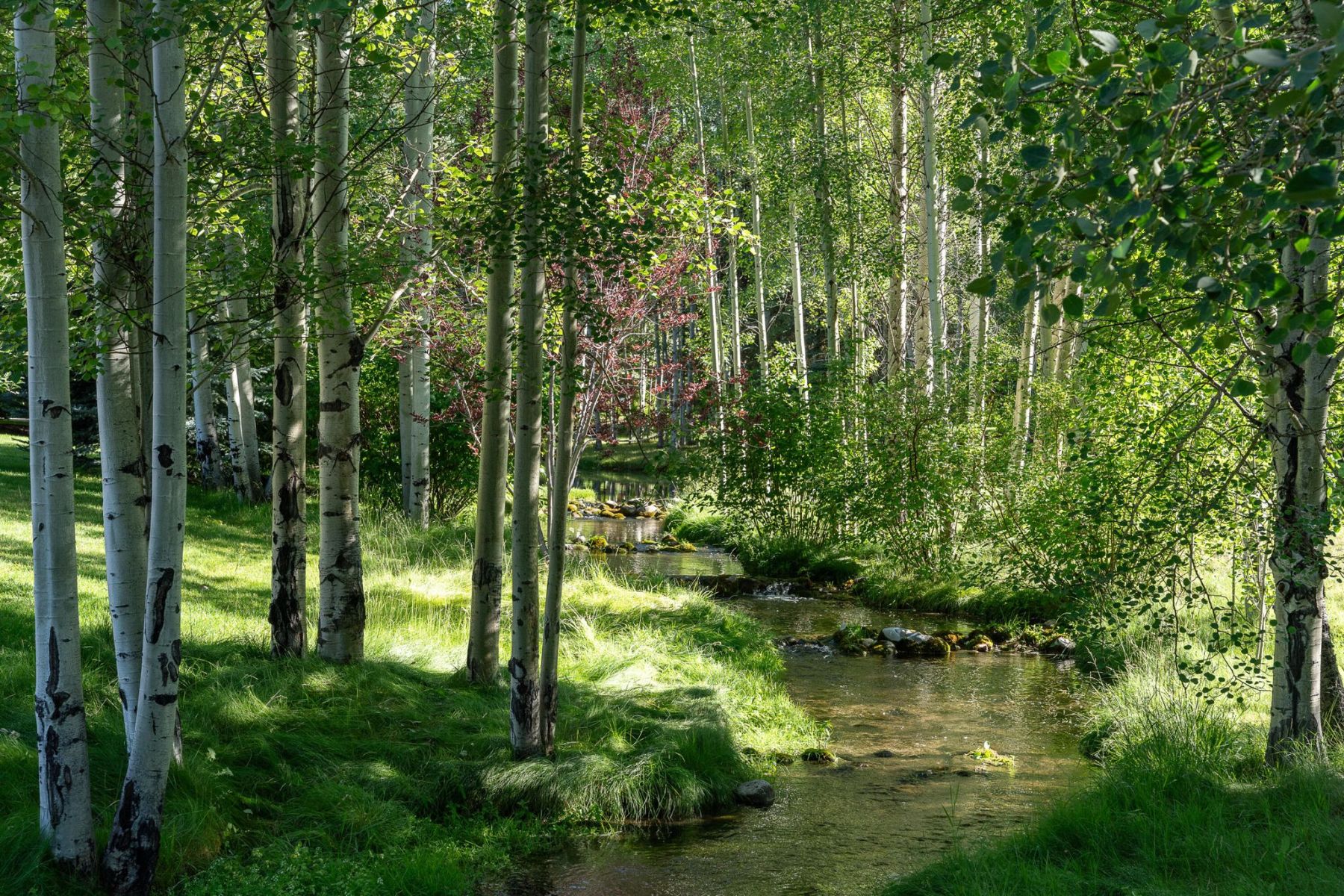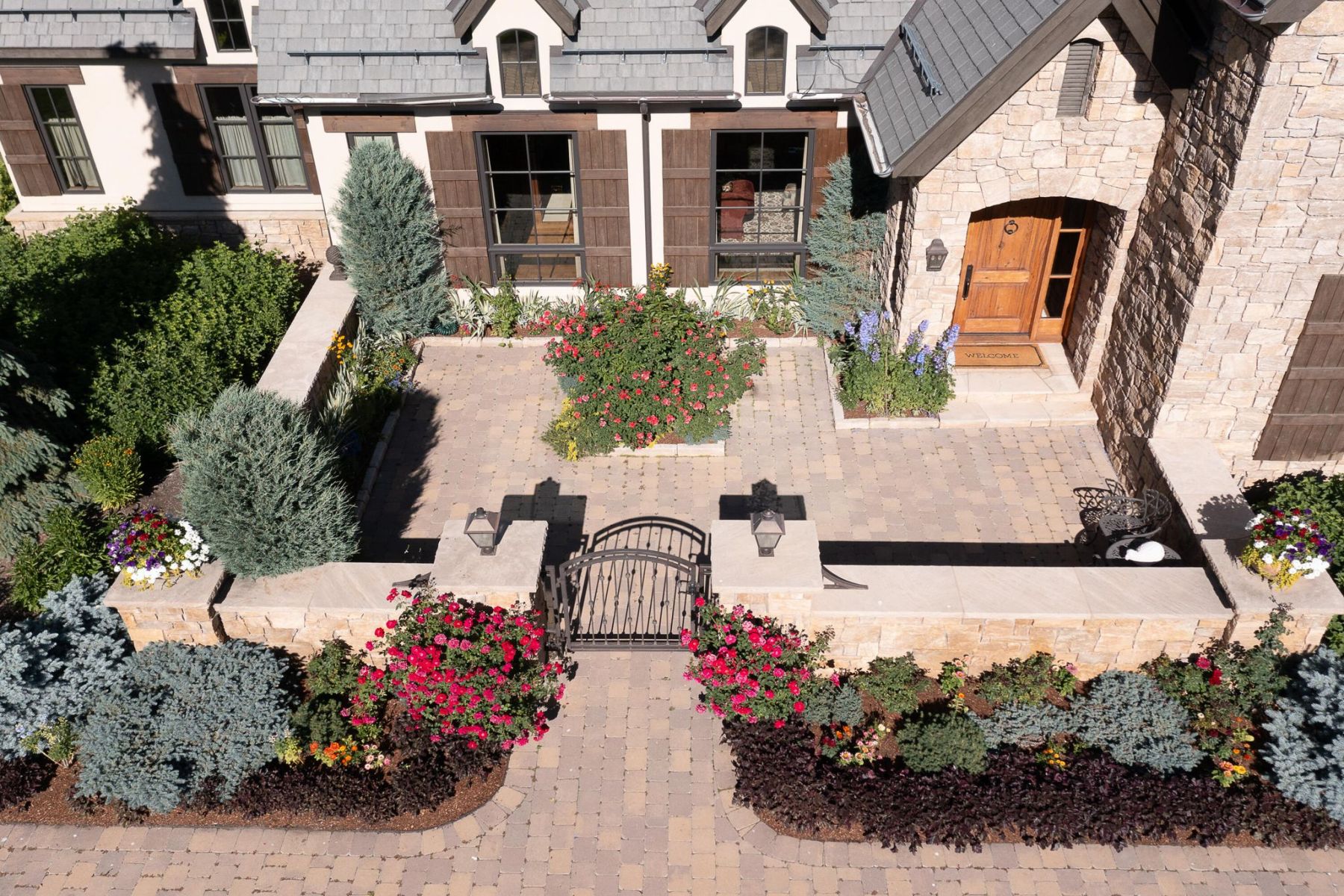 - Beautifully landscaped lot with a stream and pond
