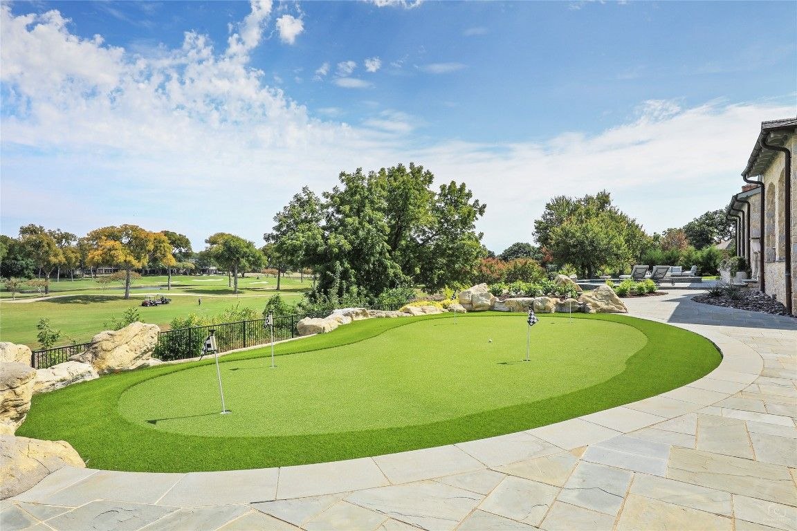 - Step outside to discover a stunning pool and spa, putting green, and covered courtyard, perfect for outdoor entertaining and enjoying the Texas sunshine.