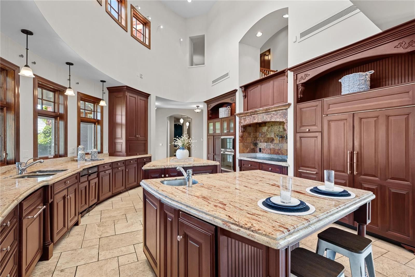 Step inside to discover a warm and inviting interior featuring radius moldings, eight masonry fireplaces, a private chapel, and two primary suites. The two-story study/library exudes sophistication, while the lower level is an entertainer’s dream, complete with bowling lanes, an expansive bar, a theater, dance floor, and conference room.