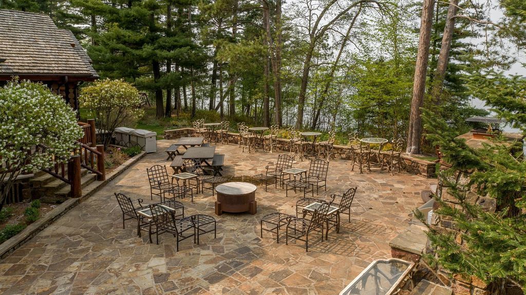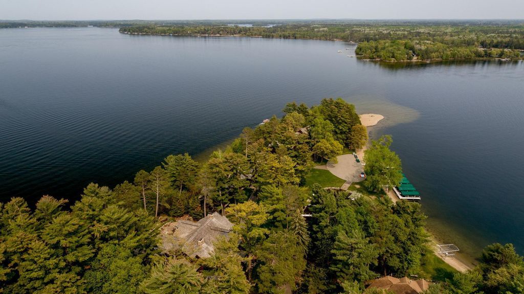 With over 2000 feet of shoreline and a private harbor, this estate provides unparalleled access to the pristine waters of Butternut Point. Enjoy lazy days on the perfect sand beach or explore the manicured, tree-studded grounds that surround the property. Gated entrances, flagstone patios, and panoramic views complete this idyllic outdoor oasis.