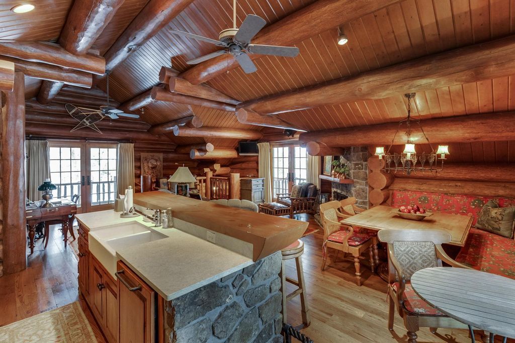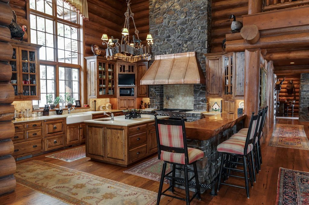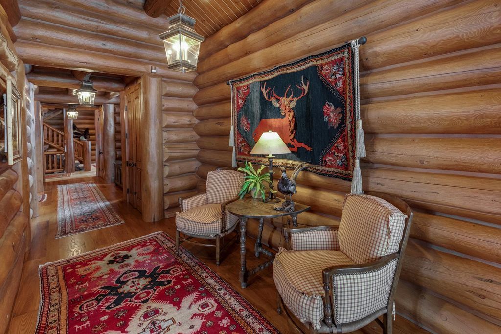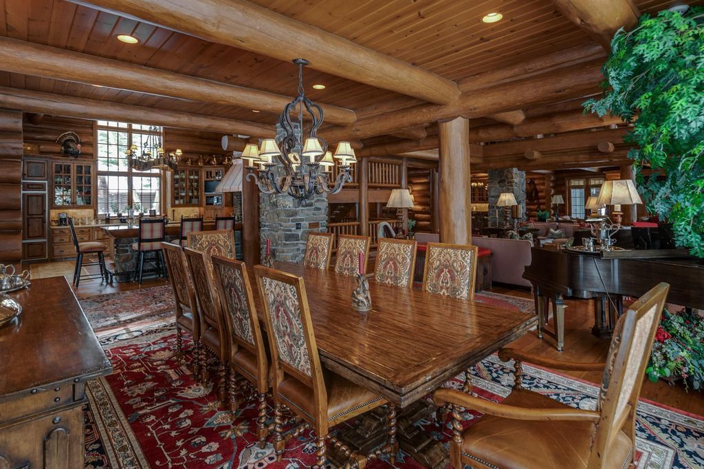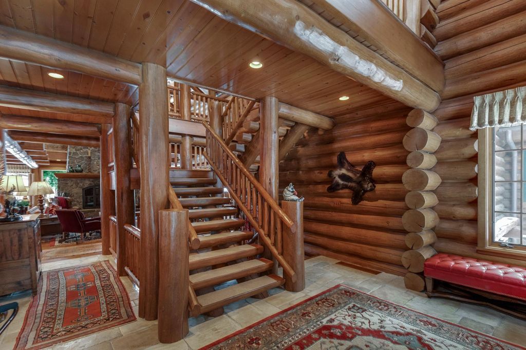 This stunning property offers a captivating blend of rustic charm and luxurious amenities. The main home, crafted from handcrafted Montana Lodge Pole Pines, boasts over 9,000 square feet of meticulously designed living space. From the lakeside owner’s suite to the spacious bunk room and full apartment above the detached garage, every detail exudes elegance and comfort.