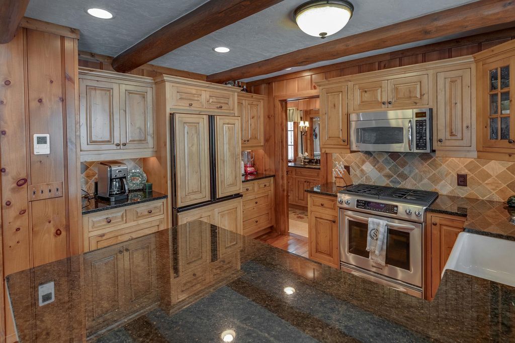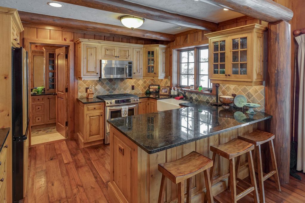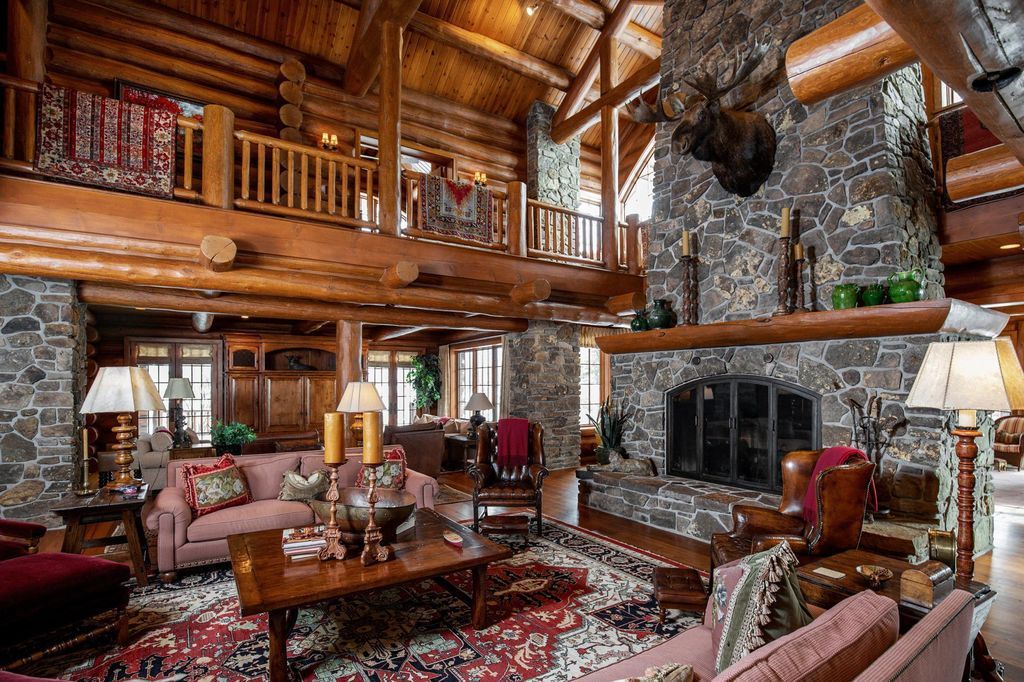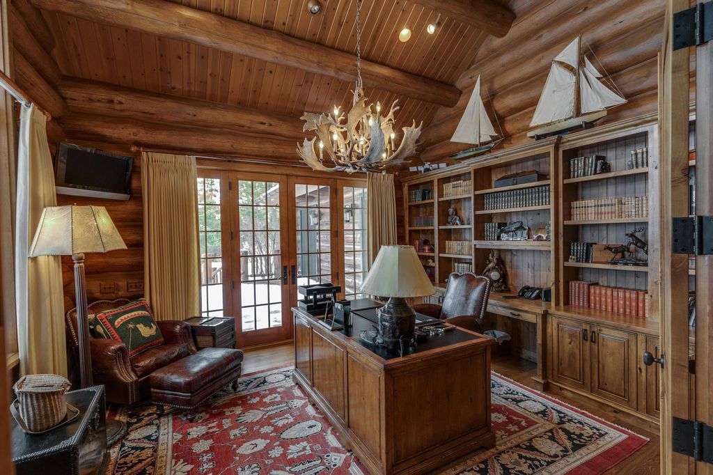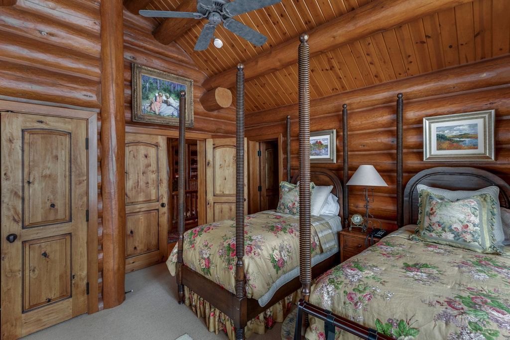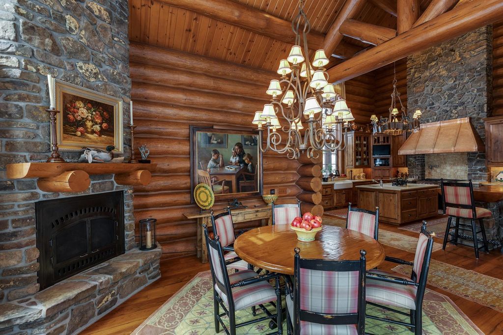 This stunning property offers a captivating blend of rustic charm and luxurious amenities. The main home, crafted from handcrafted Montana Lodge Pole Pines, boasts over 9,000 square feet of meticulously designed living space. From the lakeside owner’s suite to the spacious bunk room and full apartment above the detached garage, every detail exudes elegance and comfort.