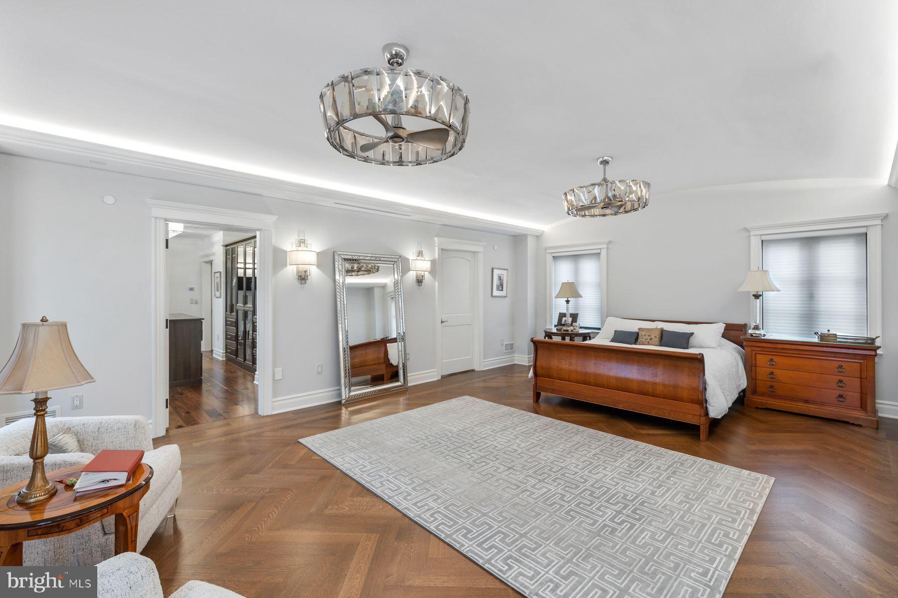 - The main owner’s suite offers a large sitting area with a fireplace, dual walk-in closets, and a spa bathroom with a unique tube elevator that leads directly to the gym.
