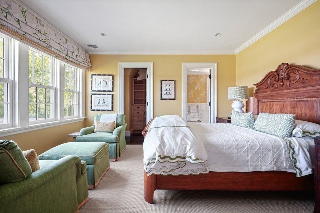 Interior Elegance: Upon entering, you are greeted by a refined interior that seamlessly marries traditional craftsmanship with modern living. Highlights include a spacious basement, a 6-bed bunk room, a top-floor family room/office, a full gym, and a yoga room. The residence is further enhanced by radiant heating, central air conditioning, and three fireplaces, ensuring comfort and ambiance throughout the year.