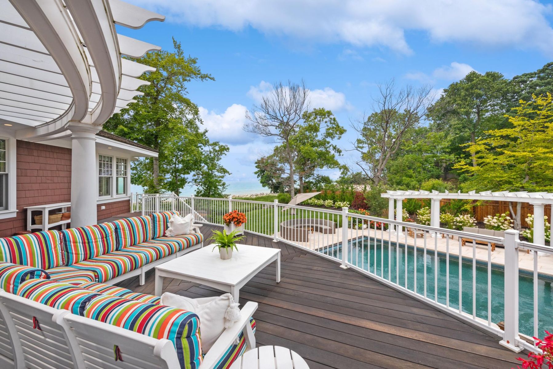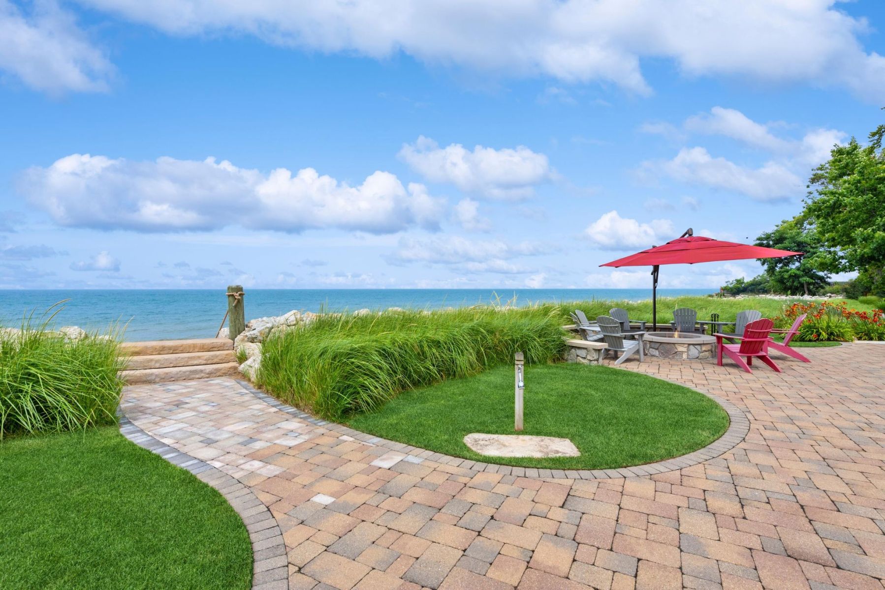 This spacious home offers room for everyone with 6 generously sized bedroom ensuites, ensuring comfort and privacy for family and guests. The interior features a blend of modern amenities and traditional charm, including wood flooring, three wood-burning fireplaces, and expansive windows that frame stunning views of Lake Michigan.