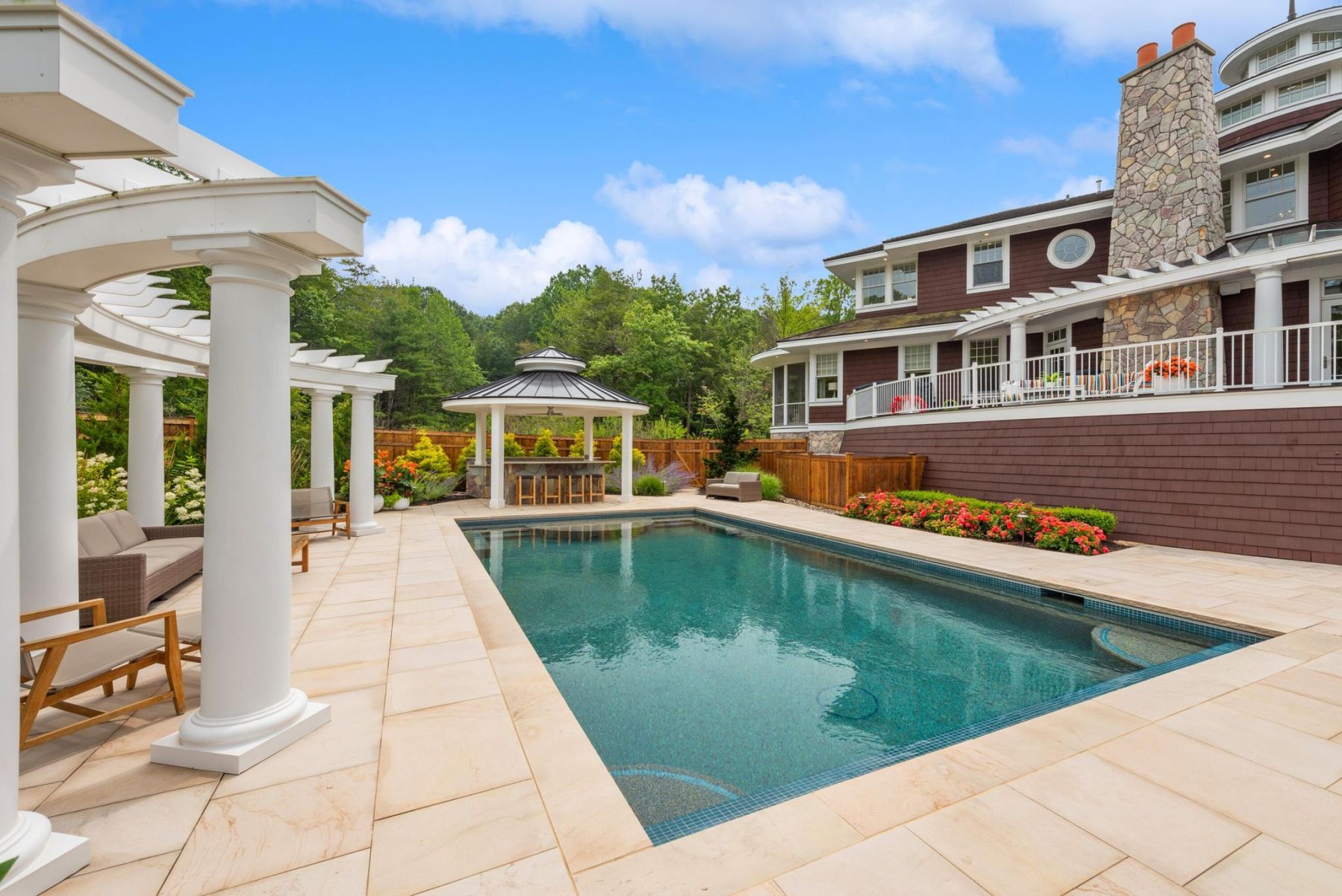 The sellers have invested over $2 million in improvements to enhance the property’s appeal and functionality. These upgrades include a resort-style concrete inground swimming pool with outdoor kitchen and pergolas, a 300-foot revetment wall, a whole-house generator, a heated and gated driveway, extensive landscaping, and updated furnaces and boilers.
