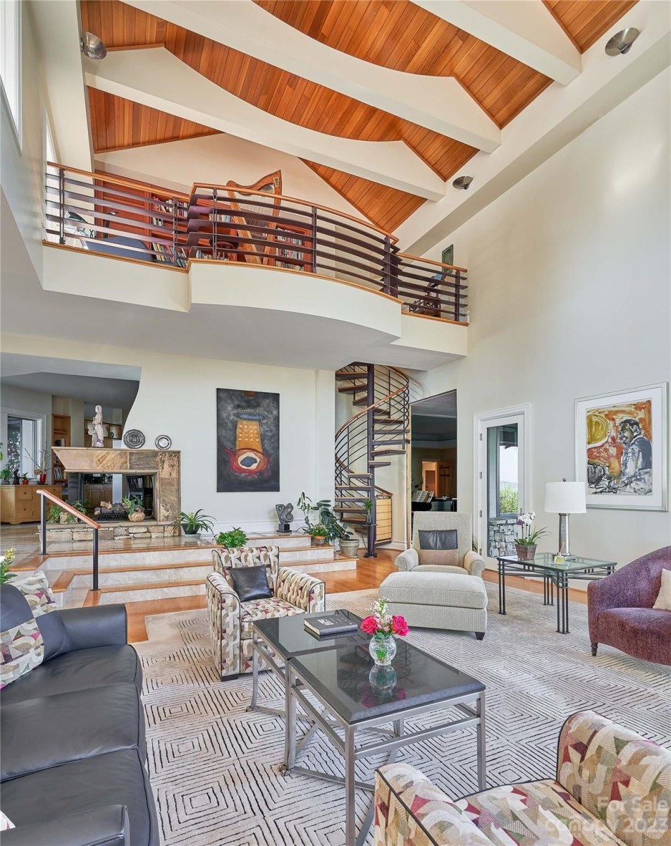 • Spacious Interiors: The home features a two-story stone fireplace and panoramic lake views from every room.
