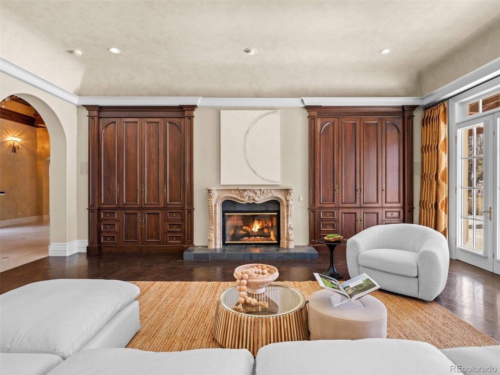 • Each room boasts custom millwork, built-ins, fireplaces, and views of the expansive grounds, ensuring a lavish living experience.