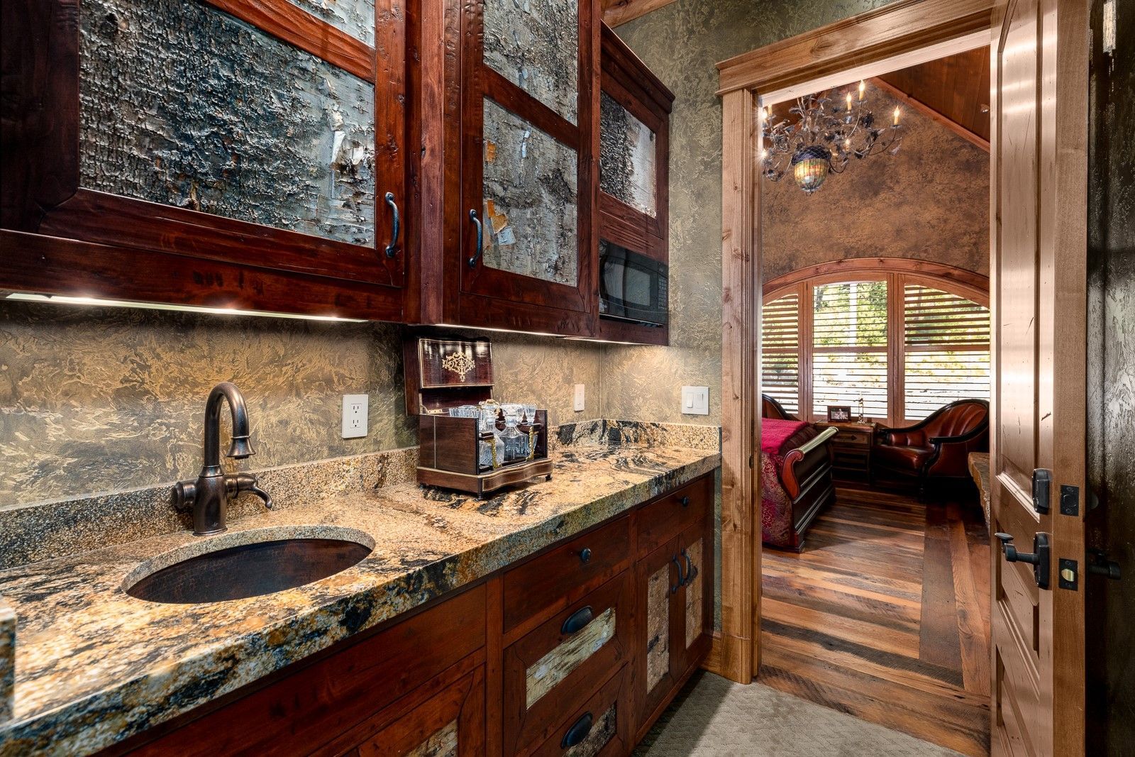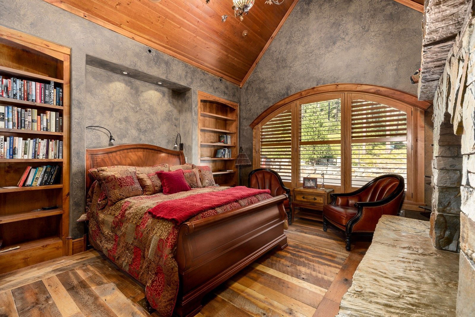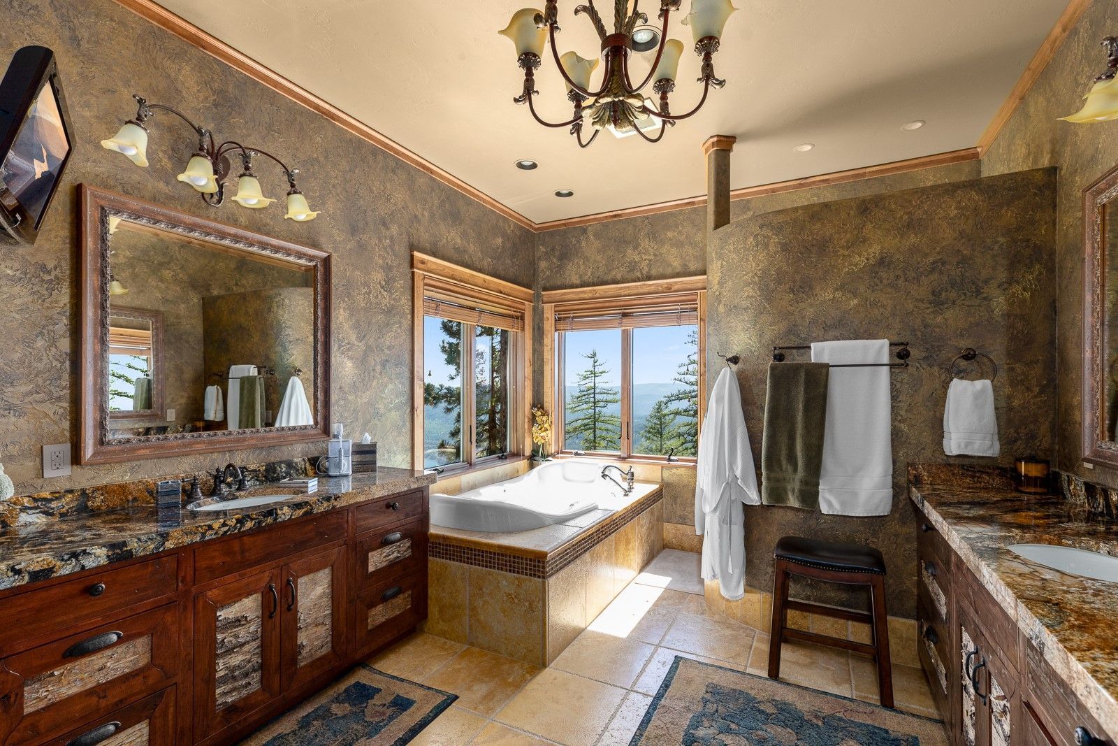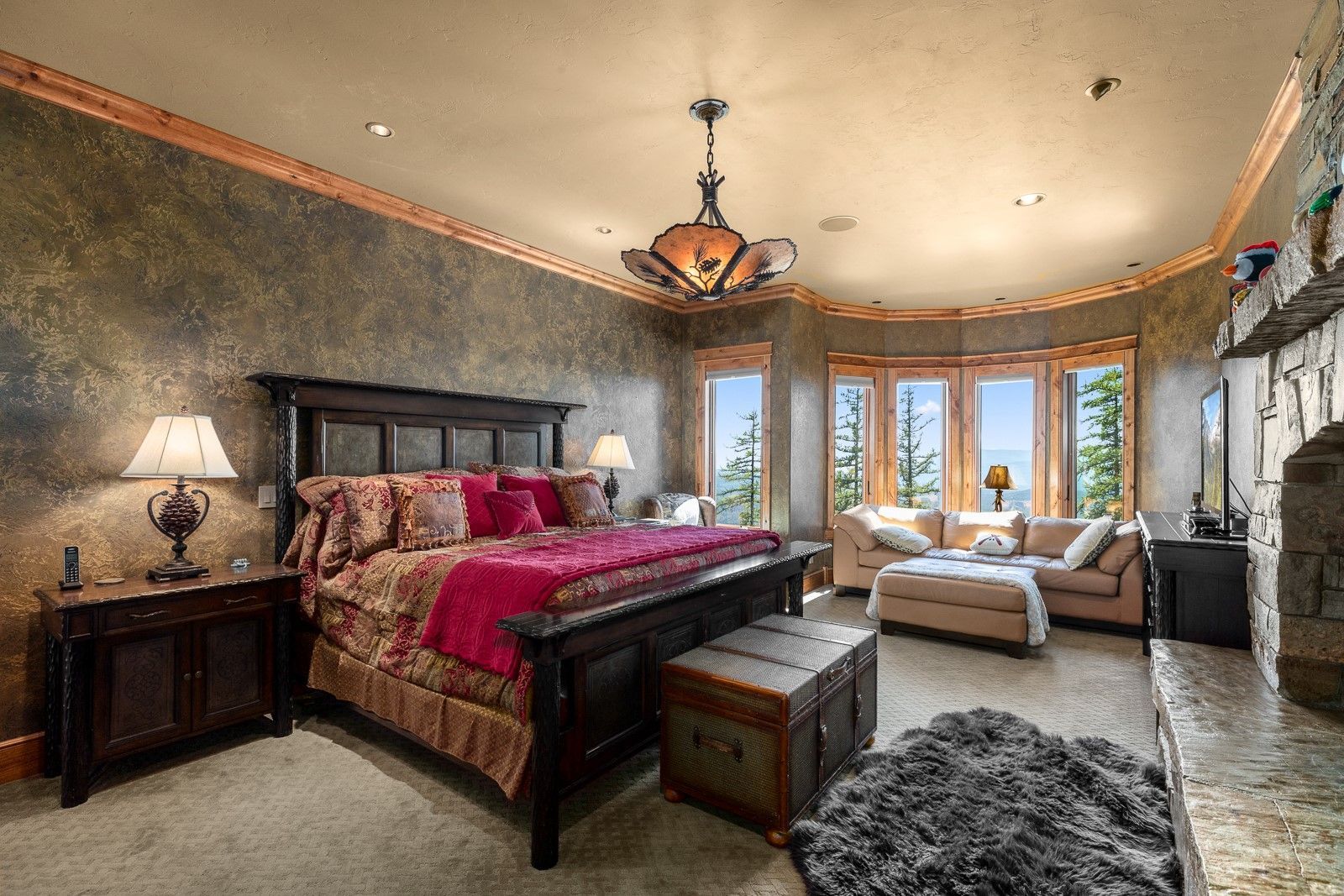 • The property boasts five fireplaces, a main level primary suite and office, lower-level theater, wine room, full bar, and a rec room.