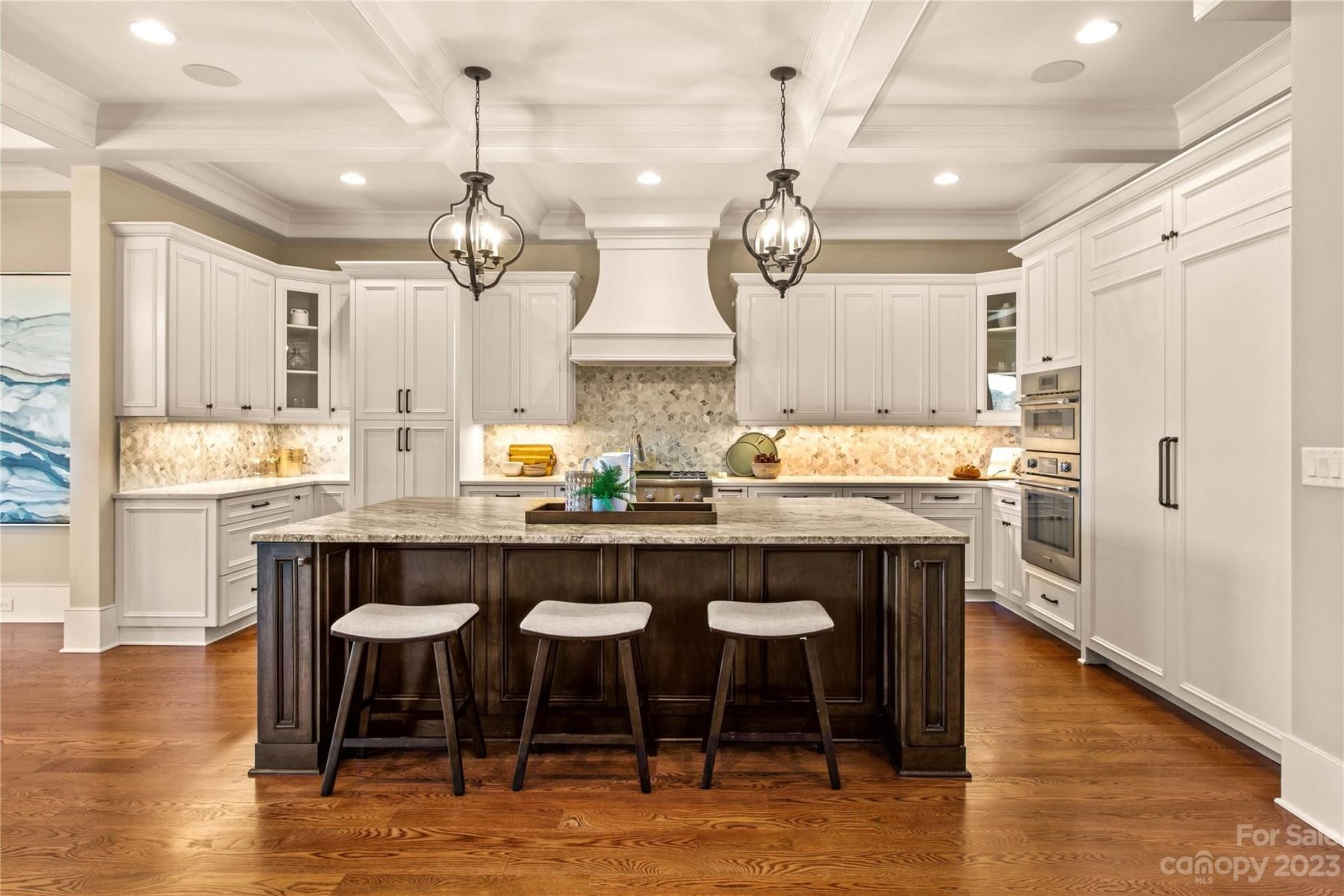 - Magnificent master suite, chef’s kitchen, and intricate trim and woodworking details throughout.