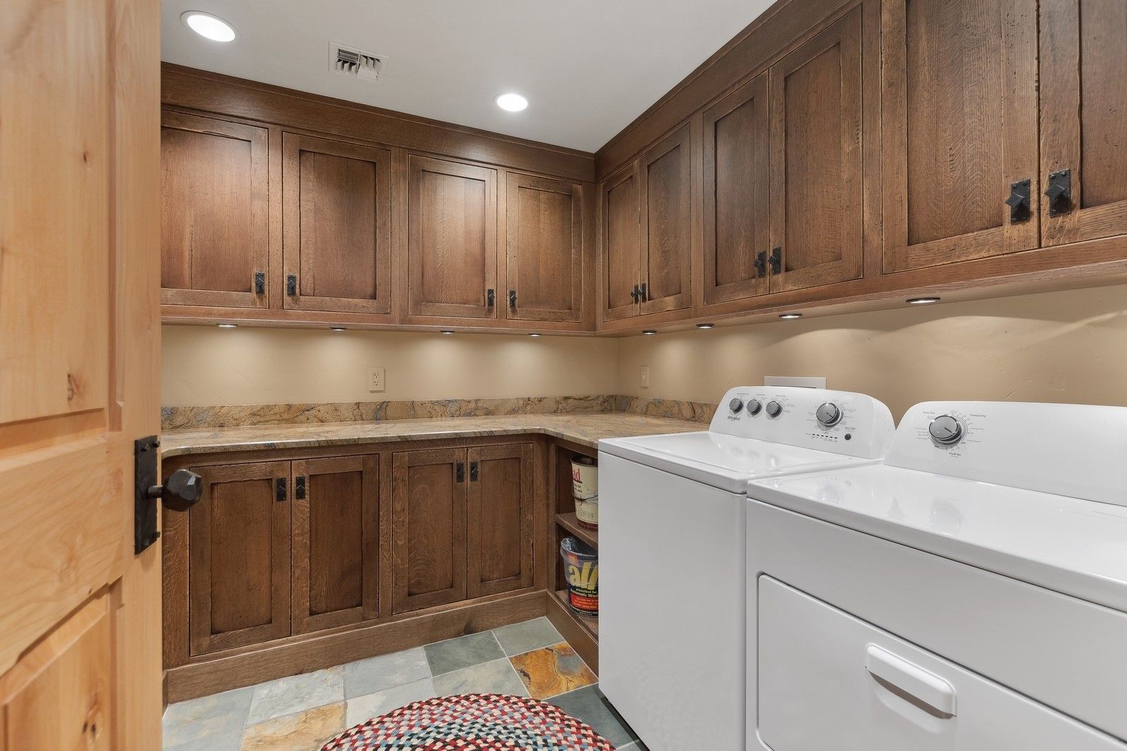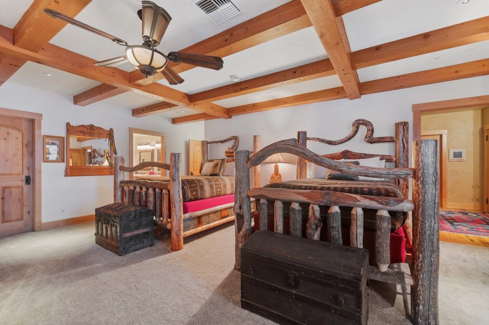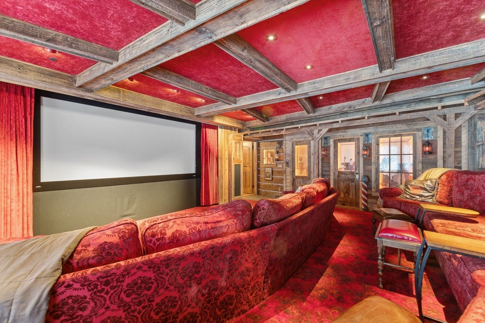 Designed to harmonize with its natural surroundings, the Northern Lights Lodge features massive windows, stunning ironwork, cedar beam supports, chestnut flooring, and bespoke cabinetry, all crafted from reclaimed barn wood sourced from Ravalli, Montana. Radiant heat floors, remote-controlled blinds, 8 dishwashers, and several laundry rooms seamlessly blend opulent indulgence with the essence of outdoor adventure.