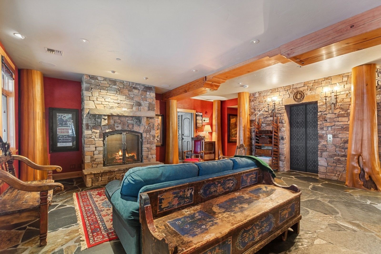 • 10 bathrooms, 5 fireplaces, a massive gourmet kitchen, 3 additional kitchenettes, elevator, hot tub, sauna, movie theatre, ski locker rooms, and multiple covered decks/patios ensure unparalleled comfort and relaxation.