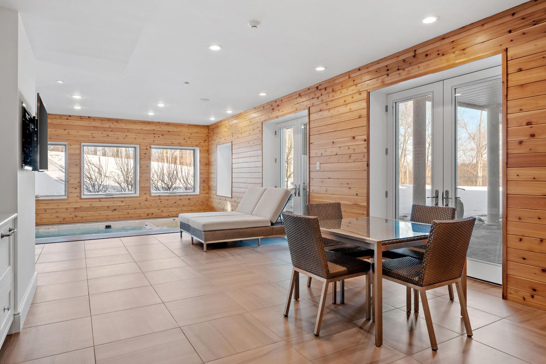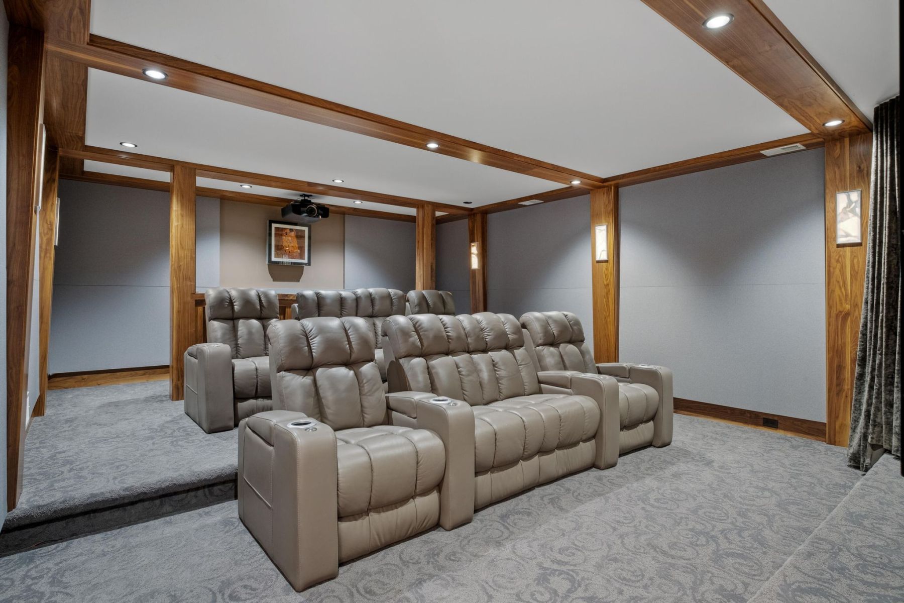 - The lower level is an entertainer’s paradise, featuring a movie theater, in-home spa with an indoor lap pool, sauna, steam room, gym area, yoga/dance studio, and more.